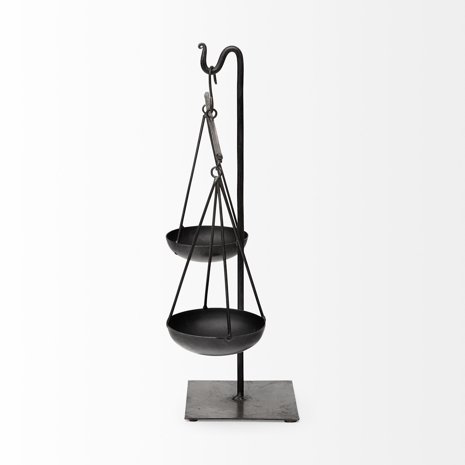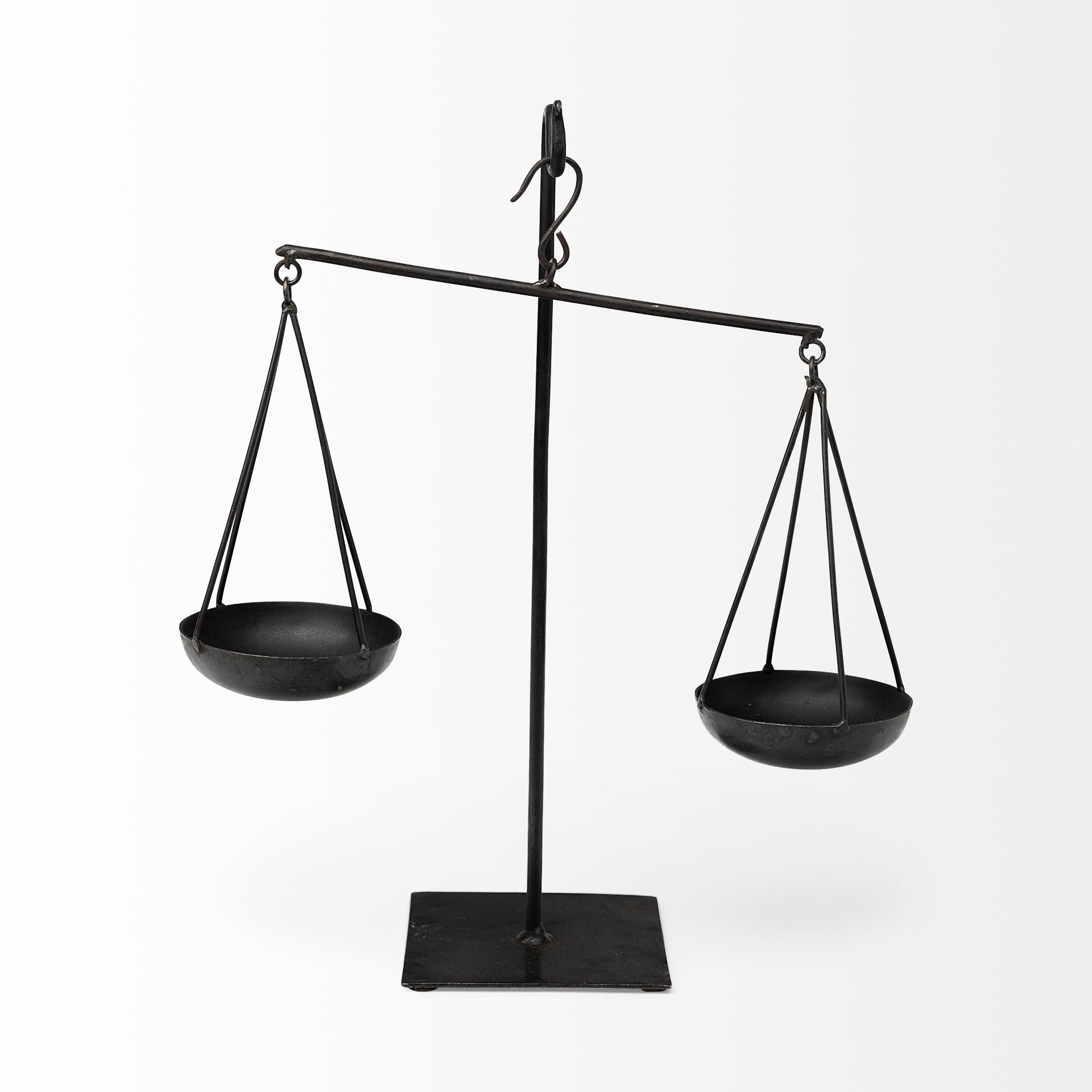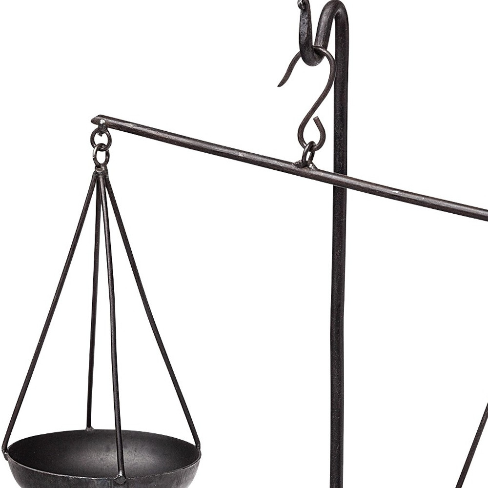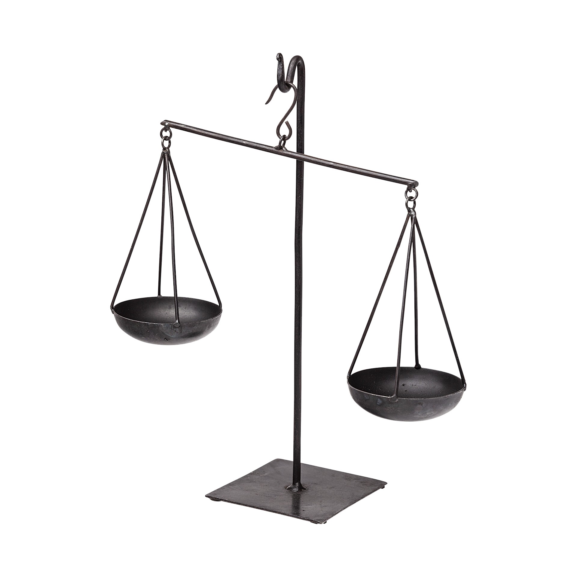 This Libra Black Vintage Decorative Scale is the perfect mix of vintage design and contemporary statement decor. This decor piece is made from solid metal and has a rustic black nickel finish on top. There is a three-legged bottom which has a vertical column coming out of it with a hook at the top end of it. The design of the body is sleek and thin which is a running theme in the whole decor piece. The hook has a horizontal rod which holds the weighing bowl at either end. This decor piece will not only elevate the look of your living room or library but will be a fun piece to add to your kitchen decor. 13″ H x 14″ W x 10″ D