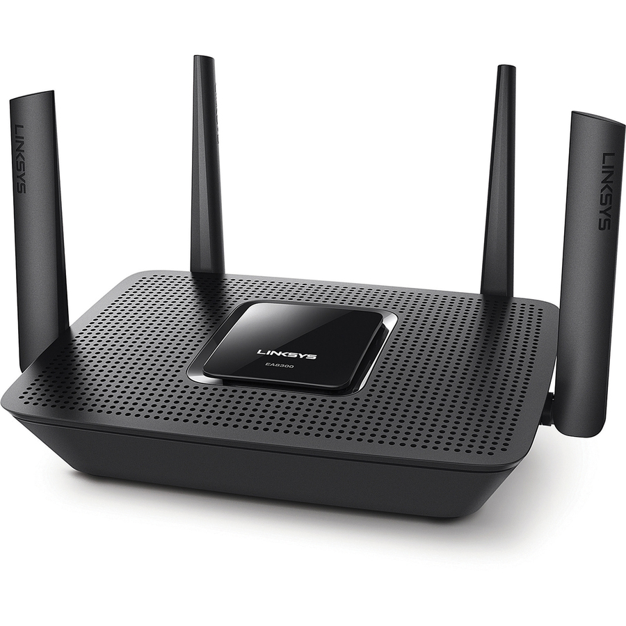 Linksys Max-Stream EA8300 Wi-Fi 5 IEEE 802.11ac Ethernet Wireless Router – Tri Band – 2.40 GHz ISM Band – 5 GHz UNII Band – 275 MB/s Wireless Speed – 4 x Network Port – 1 x Broadband Port – USB – Gigabit Ethernet – Desktop