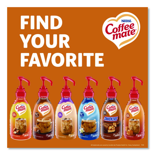 Stir up the perfect cup with Coffee mate, America’s #1 creamer brand. Nestle Coffee mate flavored liquid concentrate adds a rich and smooth flavor to your cup of coffee. In convenient pump bottles, it is shelf stable with no refrigeration needed. Coffee mate flavored liquid concentrate retains its delicious flavor at room temperature for up to nine months unopened or 30 days opened. Find your perfect match with NESCAFE Coffee and Coffee mate flavored liquid concentrate creamer. Our Coffee mate Pump Bottle liquid concentrates are available in popular options. All Coffee mate foodservice liquid concentrate pump bottles are lactose-free, cholesterol-free, gluten free and kosher dairy. See the full Coffee mate ingredients statement for Coffee mate creamer ingredients.Note: This is a non-returnable item.