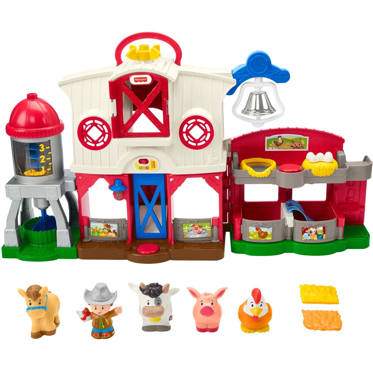 | Marketing Information | <p>The Little People Caring for Animals Farm features an action-packed collection of toys to let children discover all sorts of fun on the farm. With this playset, toddlers can help the farmer care for all their animal friends, from hatching chicks, to tucking in the horse for its nap, and showing the pig and cow how to take turns dropping through the hayloft. Fun songs, sounds and phrases introduce counting, colors, animal sounds and more with three Smart Stages levels that grow along with your child. Playset is designed for children ages 1 to 5 years.</p> |