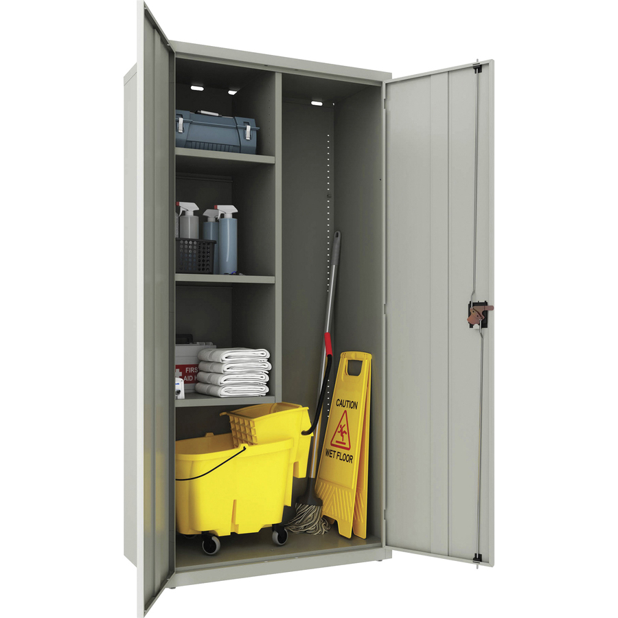 Lorell 4-shelf Steel Janitorial Cabinet – 36″ x 18″ x 72″ – 4 x Shelf(ves) – Hinged Door(s) – Locking System, Welded, Sturdy, Recessed Locking Handle, Durable, Removable Lock, Storage Space, Adjustable Shelf – Light Gray – Powder Coated – Recycled