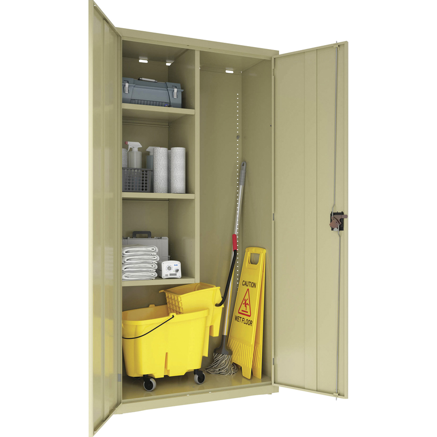 Lorell 4-shelf Steel Janitorial Cabinet – 36″ x 18″ x 72″ – 4 x Shelf(ves) – Hinged Door(s) – Locking System, Welded, Sturdy, Recessed Locking Handle, Durable, Powder Coat Finish, Storage Space, Adjustable Shelf – Putty – Steel – Recycled