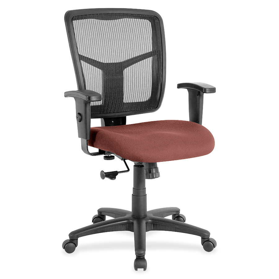 Lorell Ergomesh Mid Back Swivel Mesh Chair – Canyon Red Rock Antimicrobial Vinyl Seat – Black Mesh Back – Mid Back – 5-star Base – 1 Each