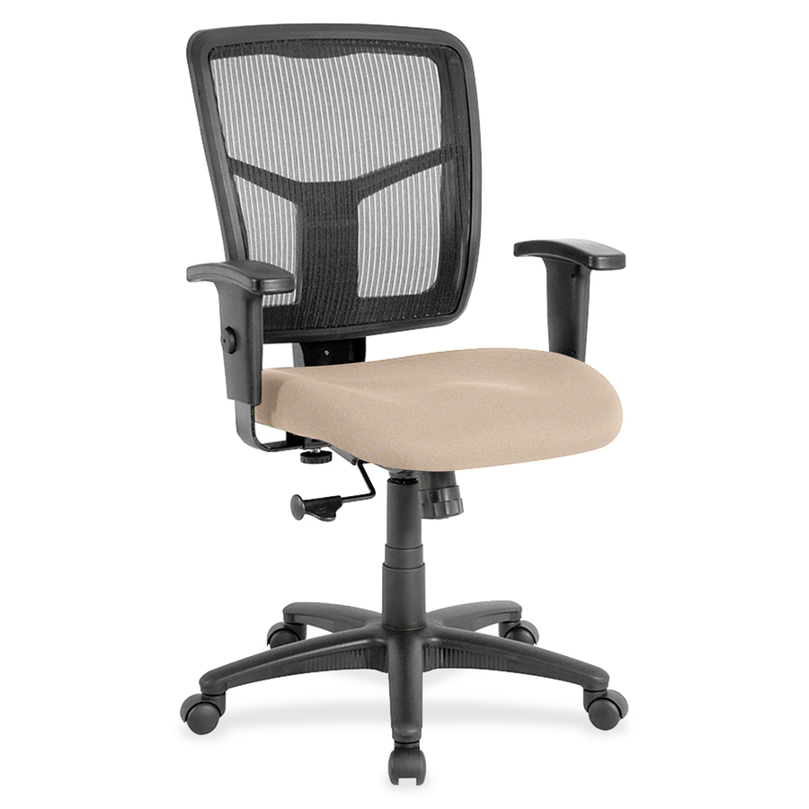Lorell Managerial Mesh Mid-back Chair – Perfection Beige Fabric Seat – Black Back – Black Frame – 5-star Base – 1 Each