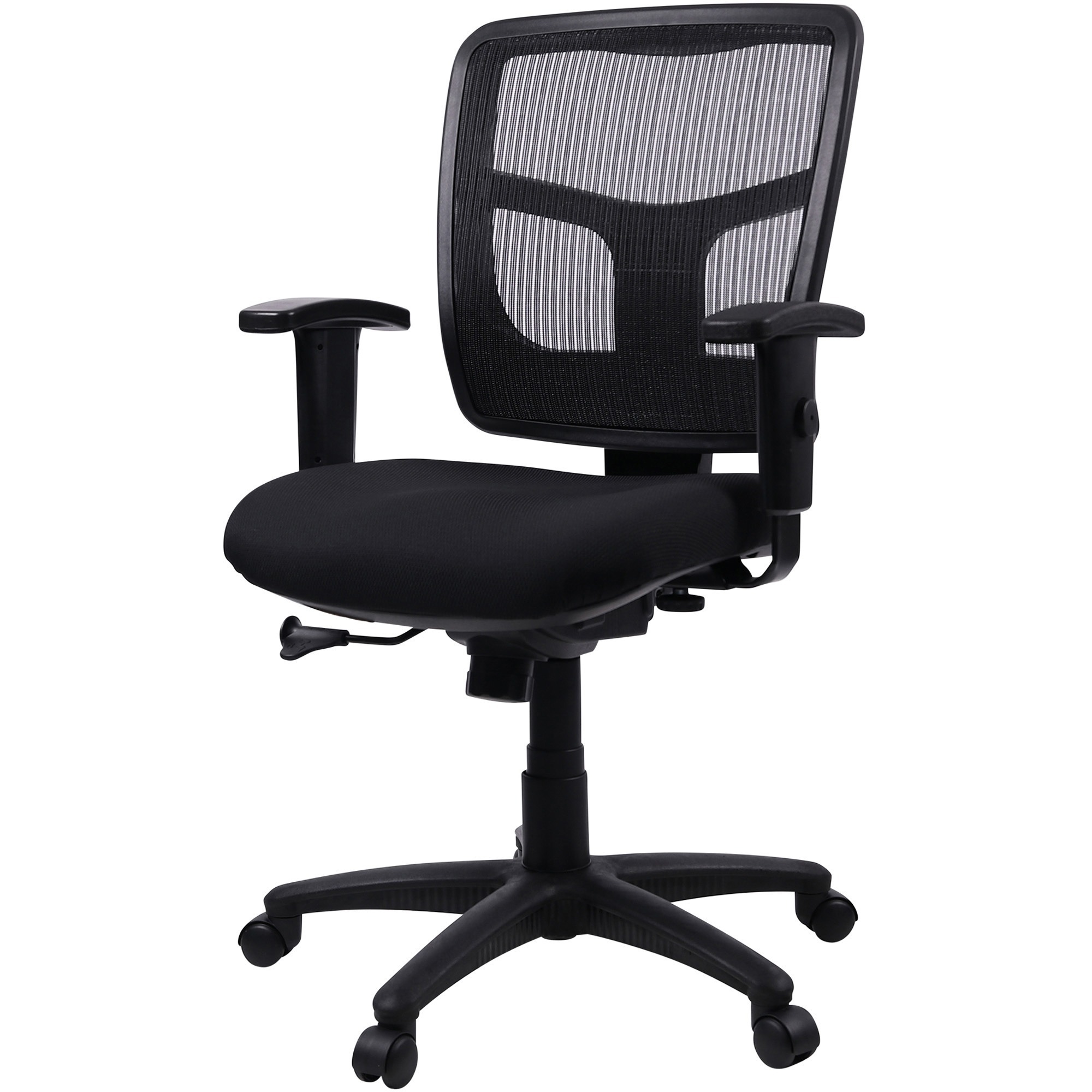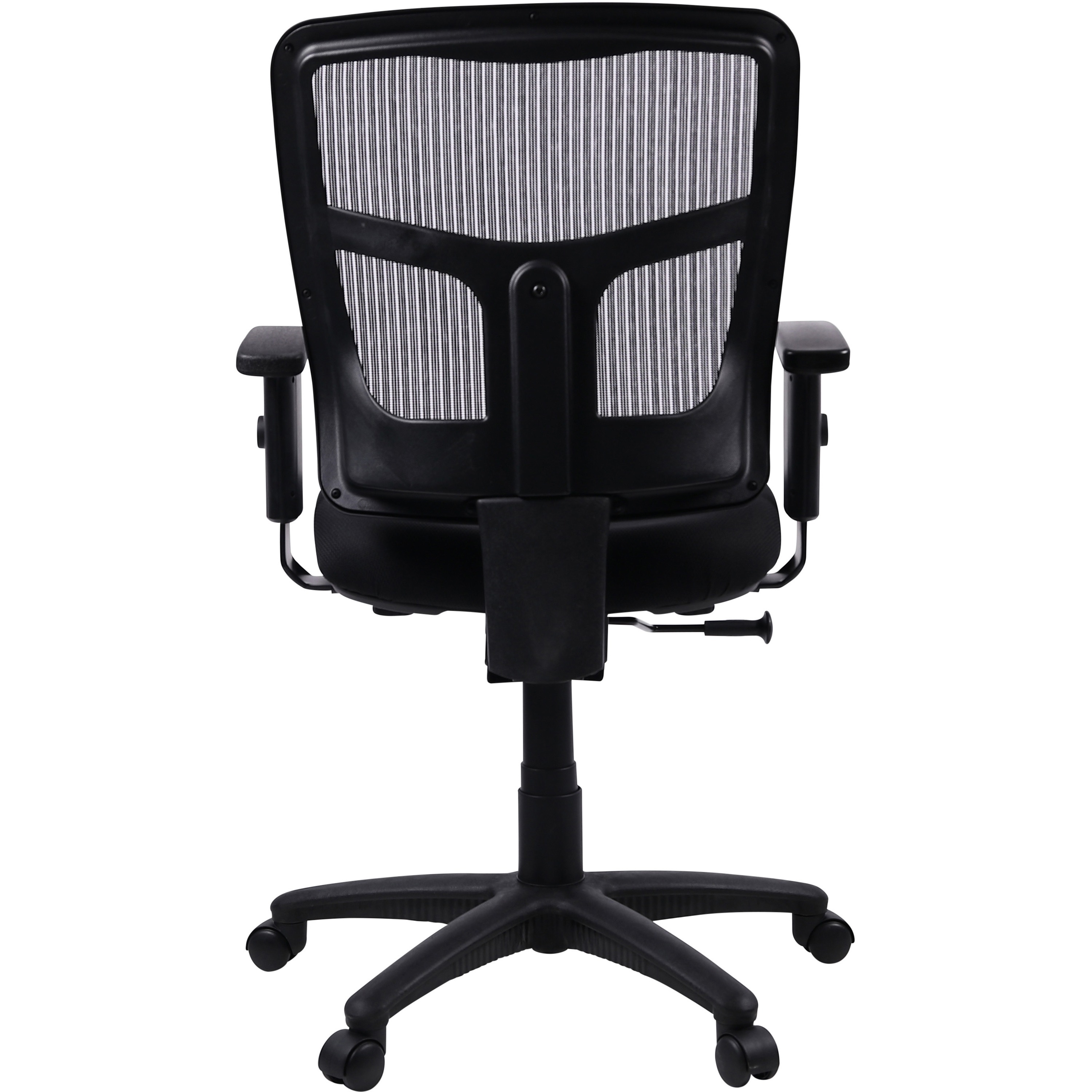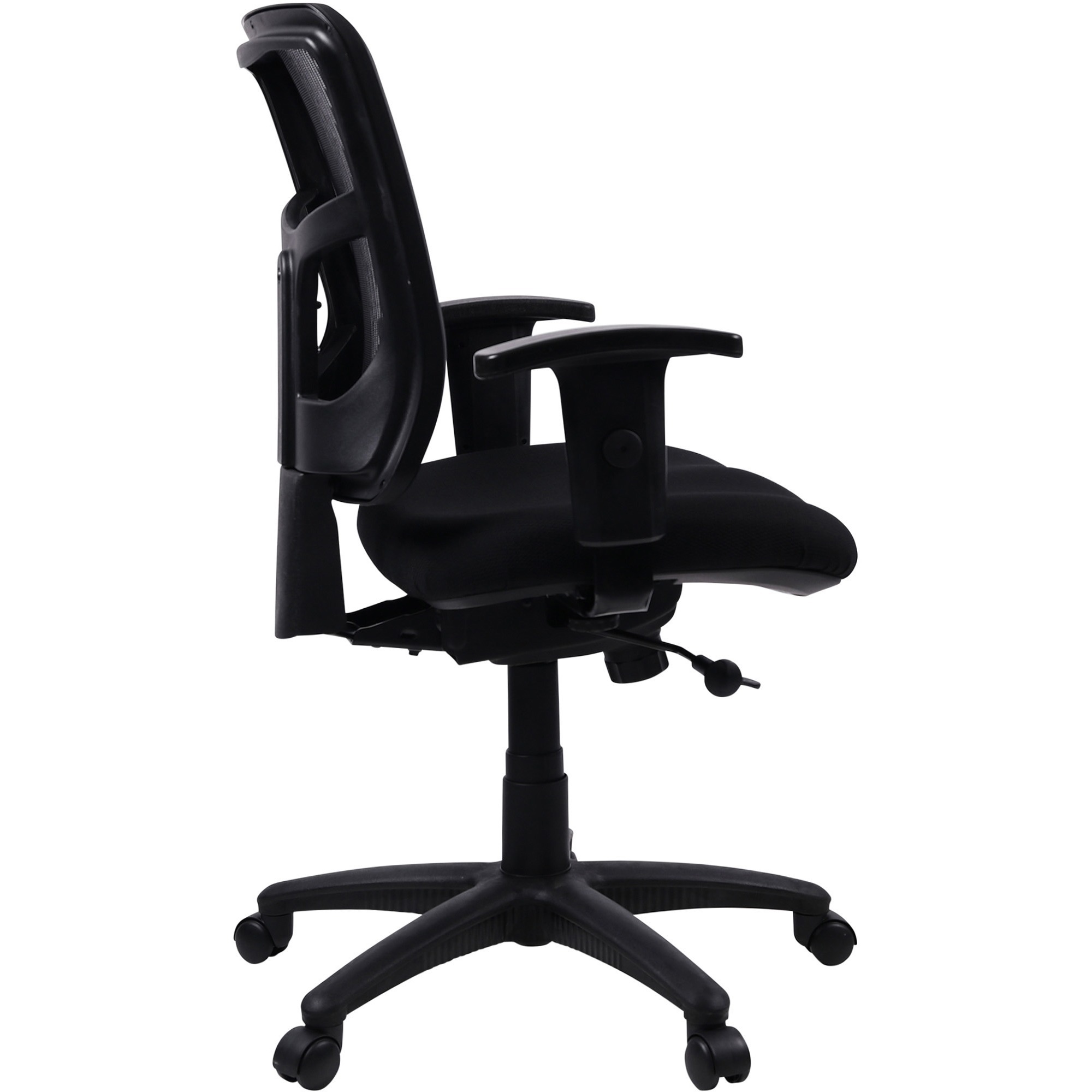 | Marketing Information | Managerial mid-back chair features a breathable mesh back chair and fabric-upholstered seat. Mesh upholstery is made of high-strength elastic nylon. Ergonomically designed mid-back matches the natural curvature of a person's back. Arms adjust in height (25" to 28-7/10") and in width (24" to 26"). Functions include pneumatic seat-height adjustment (17-7/10" to 21" high from the floor), 360-degree swivel and swivel tilt mechanism. Black frame has five-star, reinforced nylon base (25" diameter) with casters for easy mobility. Seat size is 20" wide x 18-7/10" depth. Back measures 20" wide (at the widest portion) x 19-7/10" high. Weight capacity is 250 lb. Chair meets the CA117 fire-retardant standard. <p><a id="gfk-spex-minisite" rel="nofollow" href="javascript:void(0)" onclick="javascript:window.open('//content.etilize.com/mini-site/en_us/1025487848.html', '_blank', 'height=800, width=780, resizable=yes, scrollbars=yes, toolbar=no, menubar=no, location=no, directories=no, status=no'), return false, ">More from the Manufacturer</a></p> |