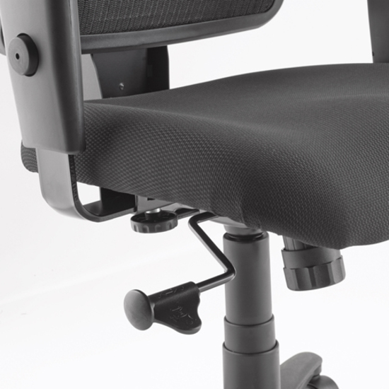 | Marketing Information | Managerial mid-back chair features a breathable mesh back chair and upholstered seat. Mesh upholstery is made of high-strength elastic nylon. Ergonomically designed mid-back matches the natural curvature of a person's back. Arms adjust in height (25" to 28-7/10") and in width (24" to 26"). Functions include pneumatic seat-height adjustment (17-7/10" to 21" high from the floor), 360-degree swivel and swivel tilt mechanism. Black frame has five-star, reinforced nylon base (25" diameter) with casters for easy mobility. Seat size is 20" wide x 18-7/10" depth. Back measures 20" wide (at the widest portion) x 19-7/10" high. Weight capacity is 250 lb. Chair meets the CA117 fire-retardant standard. |