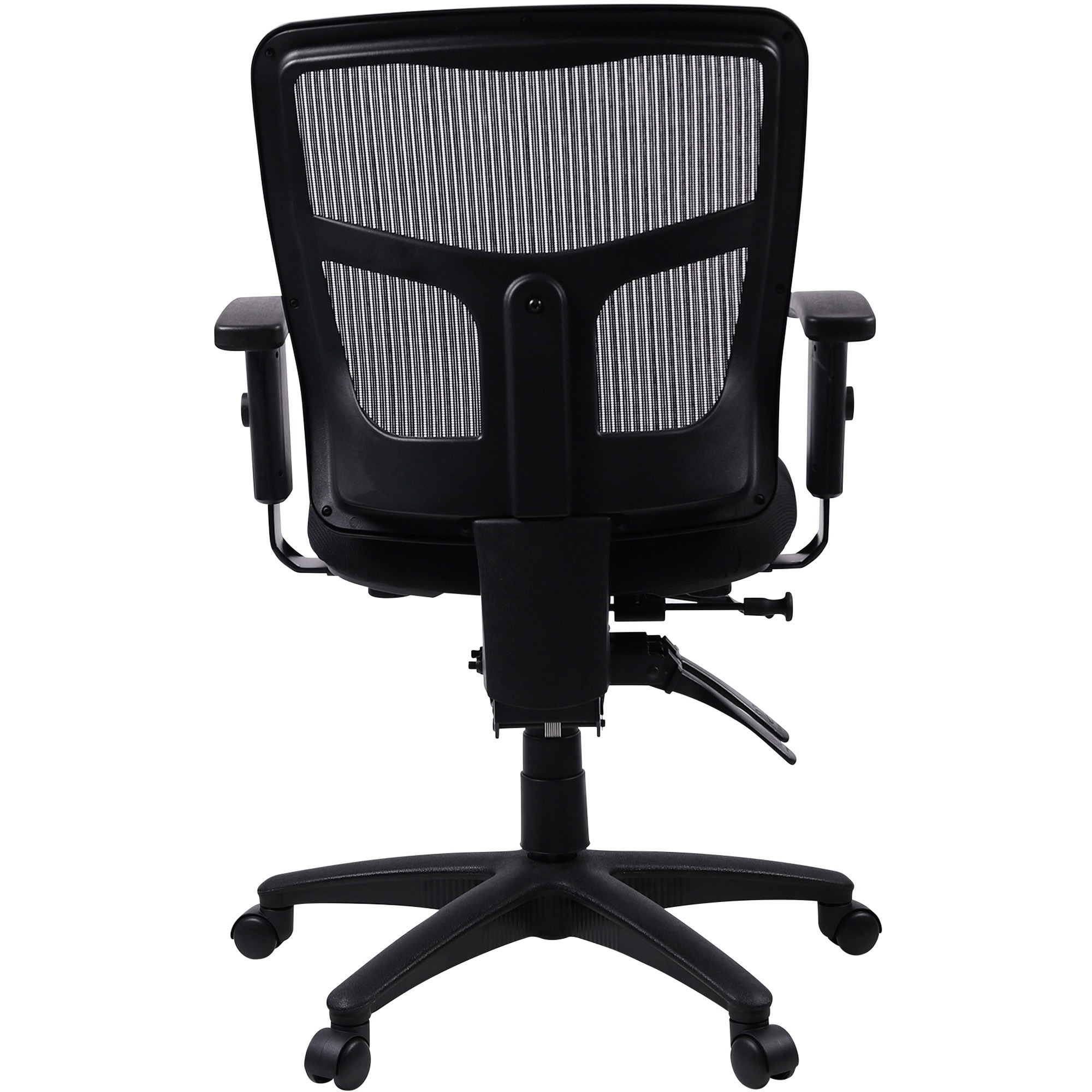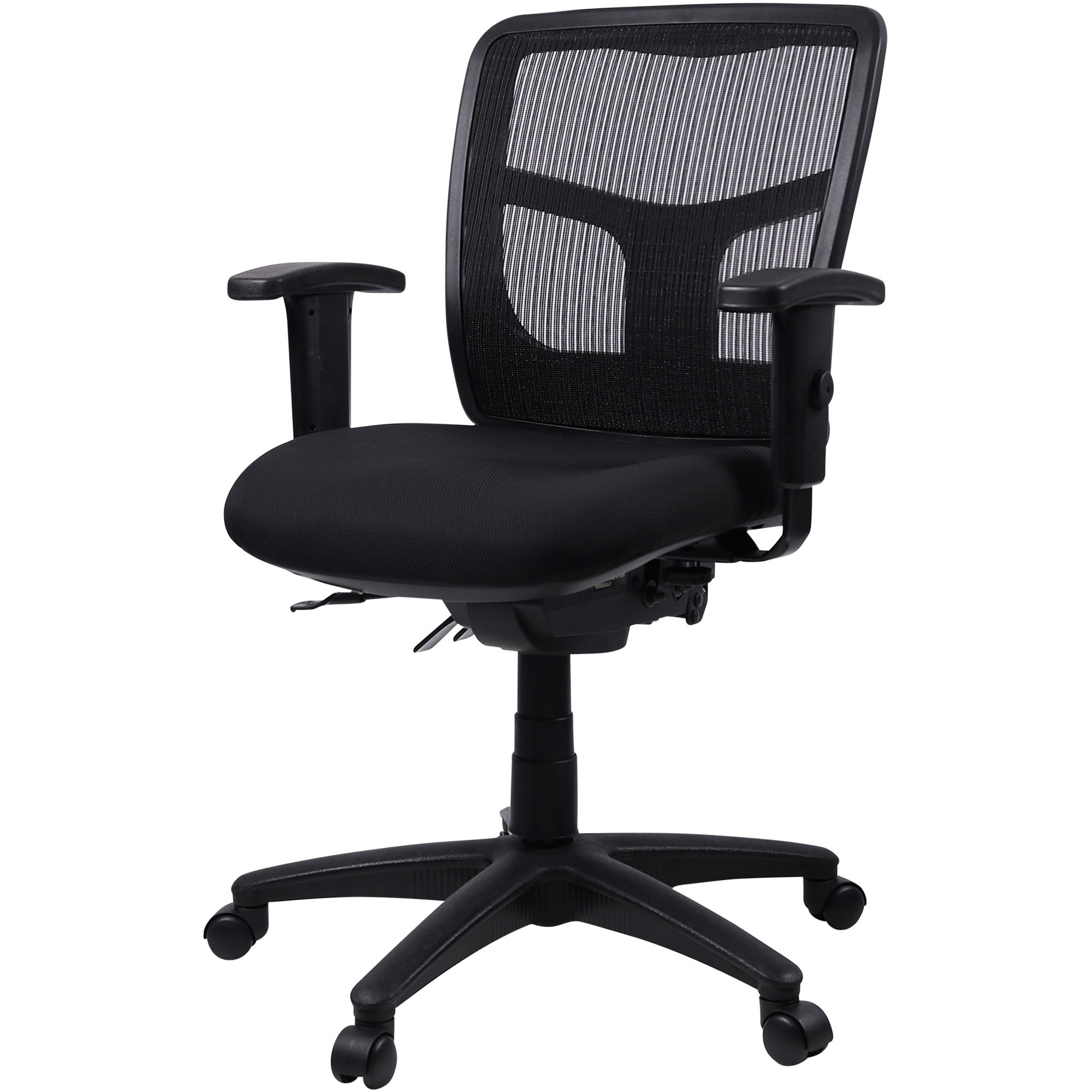 | Marketing Information | Managerial mid-back chair features a breathable mesh back chair, fabric seat and ratchet back to enhance your comfort. Mesh is made of high-strength elastic nylon. Ergonomically designed mid-back matches the natural curvature of a person's back. Seat and back angle can be adjusted and locked independently. Arms adjust in height (25-3/5" to 29") and in width (24" to 26"). Functions include pneumatic seat-height adjustment (18" to 21-2/3" high from the floor), 360-degree swivel, seat slider for seat depth adjustment, tilt and asynchronous three-lever control. Black frame has five-star, reinforced nylon base (26" diameter) with casters for easy mobility. Seat size is 20" wide x 18-7/10" depth. Back measures 20" wide (at the widest portion) x 19-7/10" high. Weight capacity is 250 lb. Chair meets the CA117 fire-retardant standard and BIFMA standards. <p><a id="gfk-spex-minisite" rel="nofollow" href="javascript:void(0)" onclick="javascript:window.open('//content.etilize.com/mini-site/en_us/1025487860.html', '_blank', 'height=800, width=780, resizable=yes, scrollbars=yes, toolbar=no, menubar=no, location=no, directories=no, status=no'), return false, ">More from the Manufacturer</a></p> |