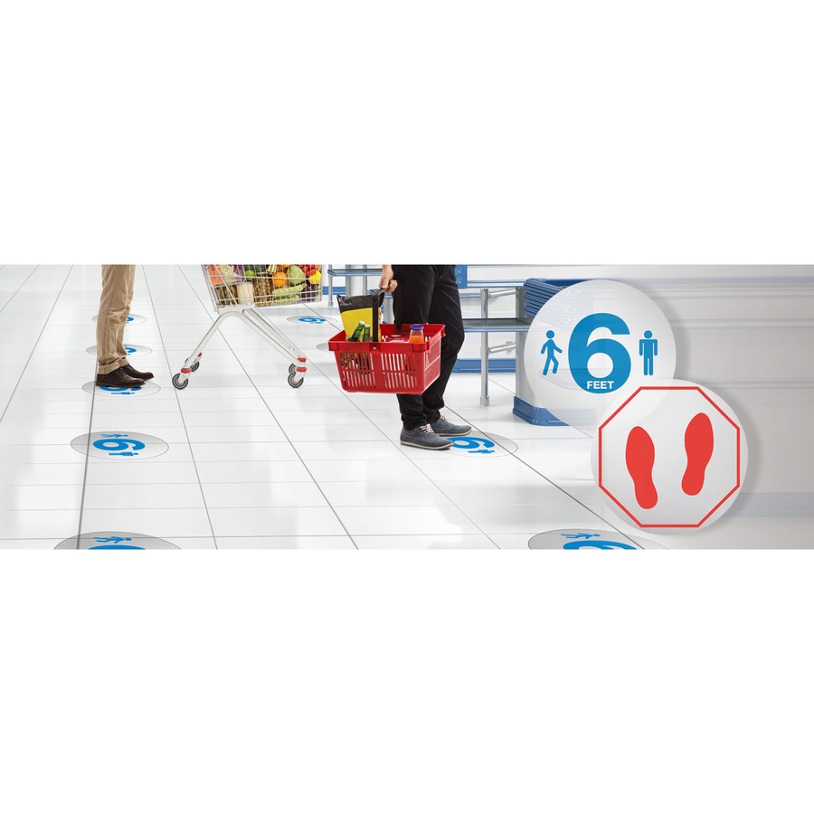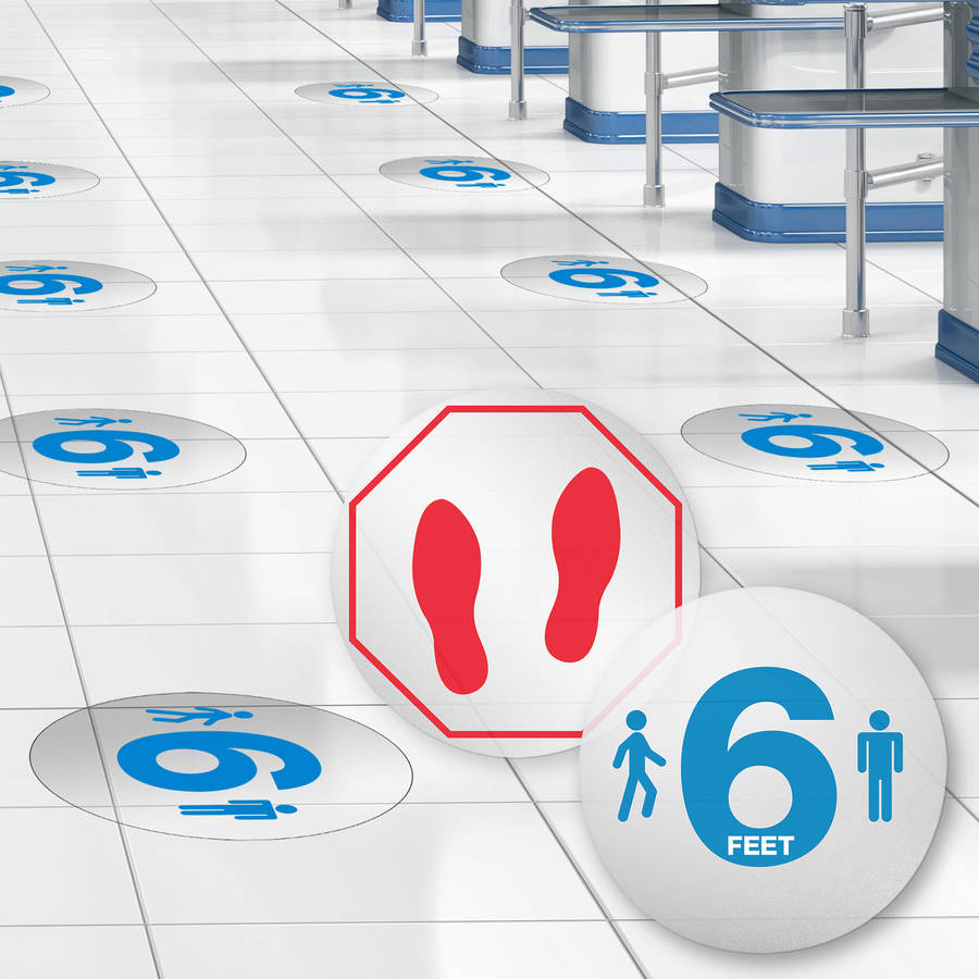 Lorell Red Feet Personal Spacing Discs – 6 / Pack – 2 x Red Feet Design – Octagonal Shape – Red Print/Message Color – Repositionable, Non-slip, Durable, Wipe-off – Vinyl – Clear, Red, White