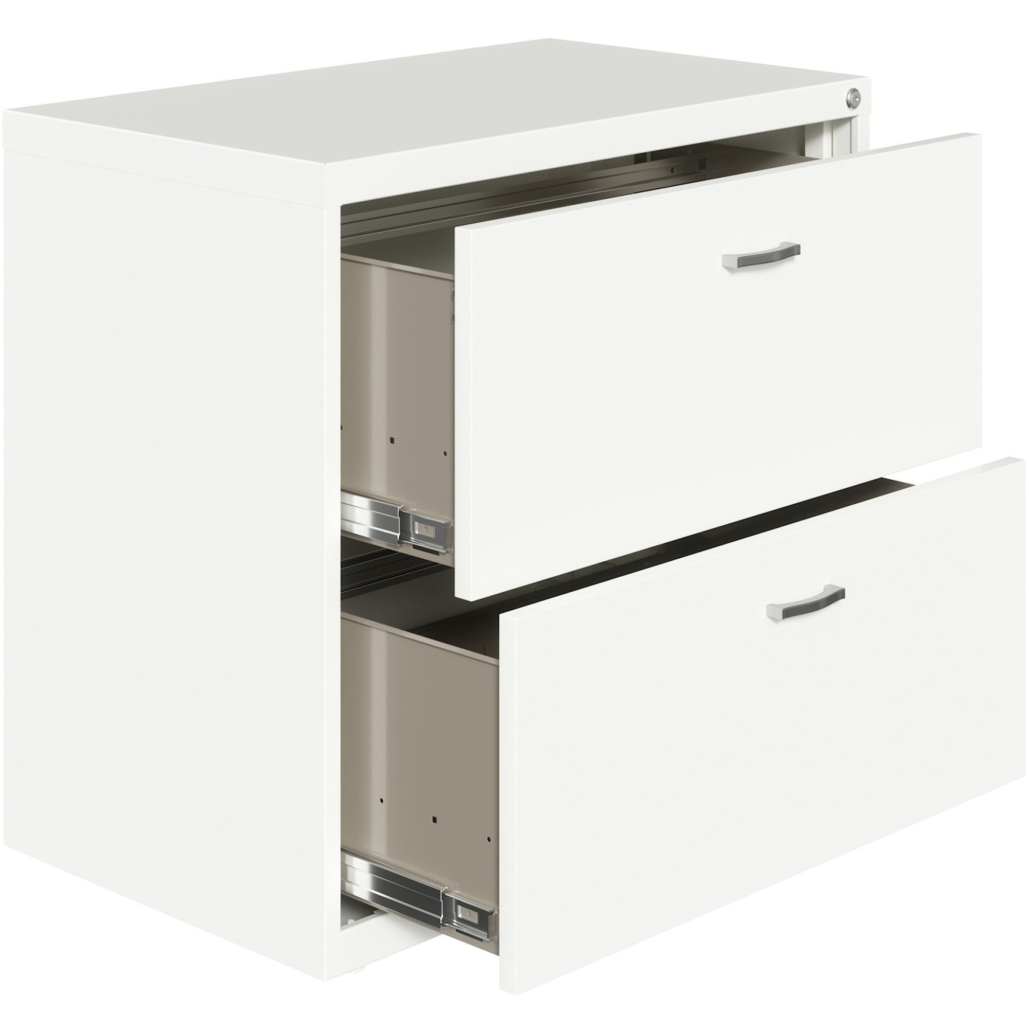 | Marketing Information | <p>Durable, SOHO Lateral File is the perfect-sized filing solution for a small or home office. Sleek arc pull adds a touch of sophistication to your work area. Two-drawer lateral file offers side-to-side filing for letter-size folders with the included hanging file rails to meet your filing needs. Interlock system prohibits the extension of more than one drawer at a time to prevent tipping. Both versatile file drawers offer three-part, steel ball-bearing, slide suspension. Lateral file is equipped with a core-removable lock for security and two adjustable leveling guides for stabilization. Durable, fully assembled, steel construction with nonporous surface is easy to clean and disinfect. Lateral file meets and/or exceeds applicable ANSI/BIFMA standards.</p> |