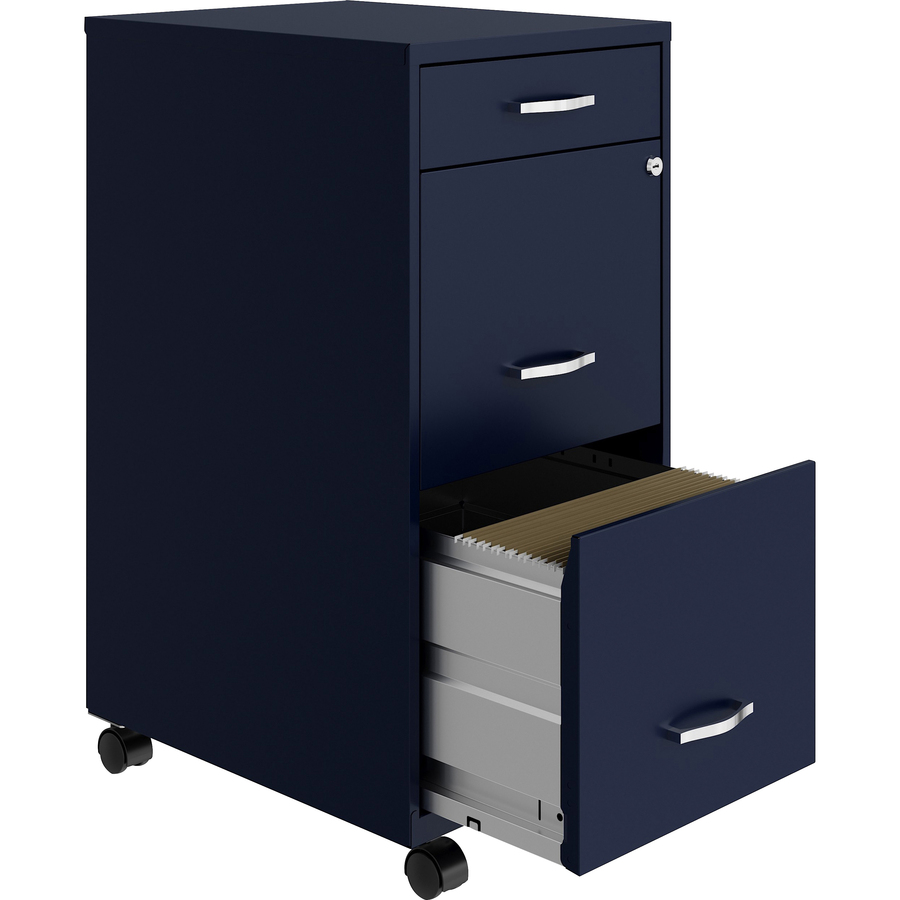 Lorell SOHO Box/File/File Mobile File Cabinet – 14.3″ x 18″ x 29.5″ – 3 x Drawer(s) for Box, File, Accessories – Letter – Glide Suspension, Locking Drawer, Casters, Recessed Handle – Navy – Baked Enamel – Steel – Recycled