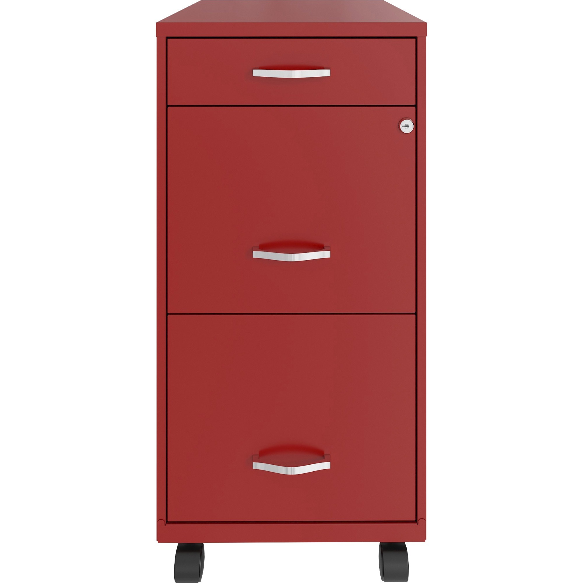 Lorell SOHO Box/File/File Mobile File Cabinet – 14.3″ x 18″ x 29.5″ – 3 x Drawer(s) for Box, File, Accessories – Letter – Glide Suspension, Locking Drawer, Casters, Recessed Handle – Red – Steel – Recycled