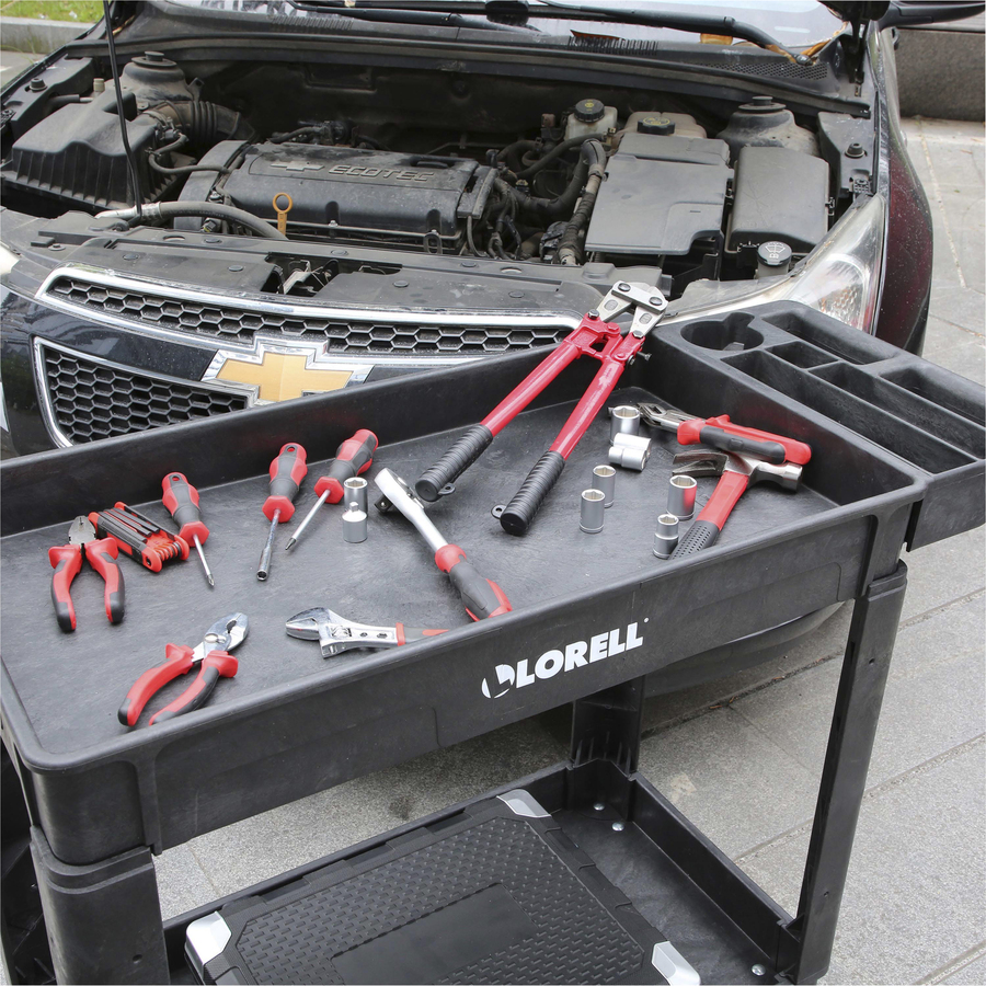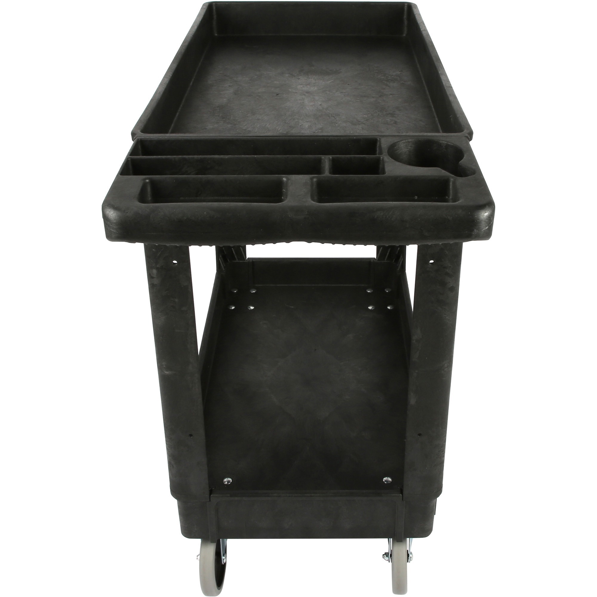 | Marketing Information | Use this utility cart for transporting equipment, tools and heavy loads in any environment. It is tough enough for material handling and maintenance. Sturdy, structure foam construction won't rust, dent, chip or peel easily. Built-in storage bin in the handle is the perfect way to store small parts. Rounded corners protect walls and furniture. Lightweight, maneuverable cart moves easily on two 5" rigid casters and two 5" swivel casters all in thermoplastic rubber. It holds up to 550 lb. <p><a id="gfk-spex-minisite" rel="nofollow" href="javascript:void(0)" onclick="javascript:window.open('//content.etilize.com/mini-site/en_us/1066902300.html', '_blank', 'height=800, width=780, resizable=yes, scrollbars=yes, toolbar=no, menubar=no, location=no, directories=no, status=no'), return false, ">More from the Manufacturer</a></p> |