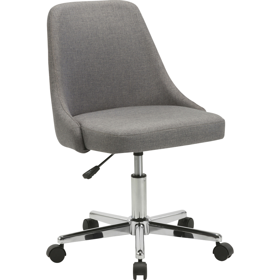 | Marketing Information | Mid-century modern-inspired task chair with no arms is upholstered with stylish gray fabric for a professional look. Seat and back are cushioned for comfort. Simple design features 360-degree swivel and seat-height adjustment. The five-star chrome base is equipped with smooth-rolling casters. Task chair meets BIFMA requirements. <p><a id="gfk-spex-minisite" rel="nofollow" href="javascript:void(0)" onclick="javascript:window.open('//content.etilize.com/mini-site/en_us/1060479511.html', '_blank', 'height=800, width=780, resizable=yes, scrollbars=yes, toolbar=no, menubar=no, location=no, directories=no, status=no'), return false, ">More from the Manufacturer</a></p> |