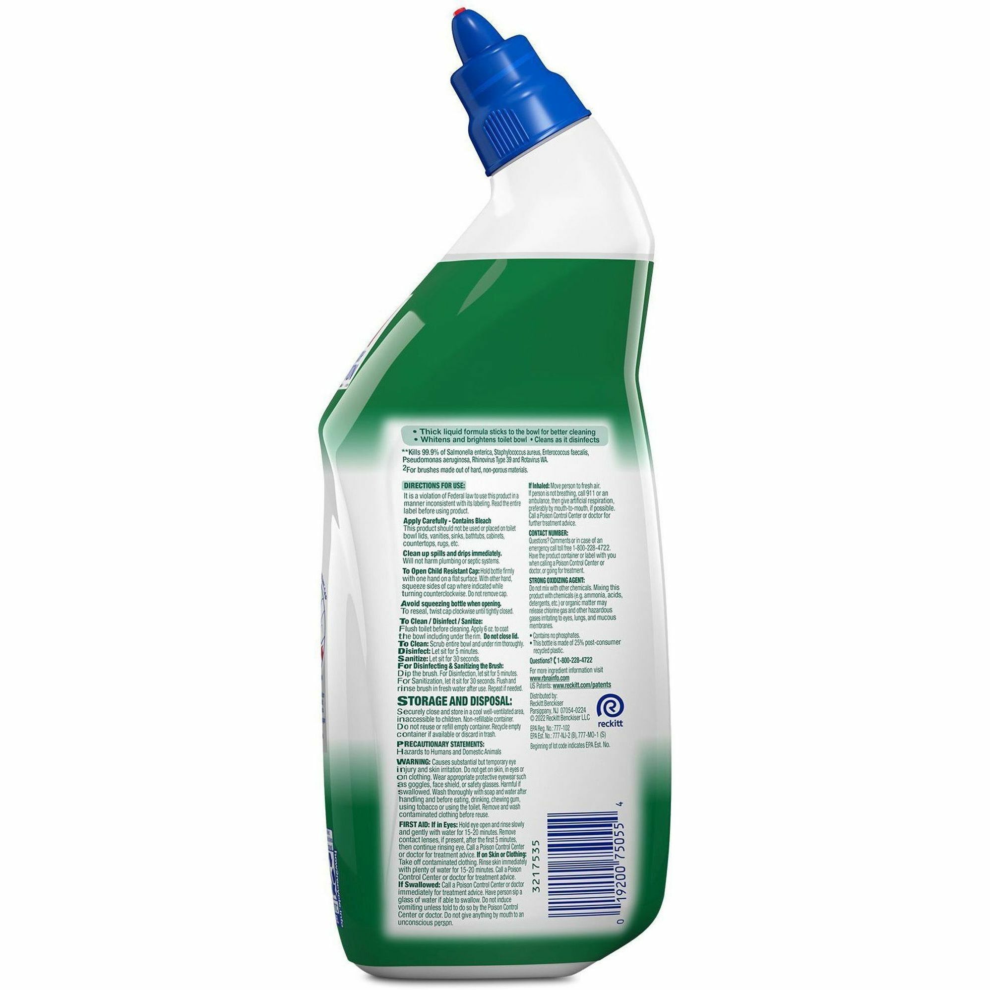 | Marketing Information | <p>Toilet bowl cleaner features an advanced formula with bleach to kill 99.9 percent of viruses and bacteria from toilet bowls and urinals. Thick formula clings to the bowl for better coverage as it brightens, cleans and disinfects. Angled bottle targets hard-to-reach areas, including under the rim, to leave your entire bowl sparkling clean.</p> |