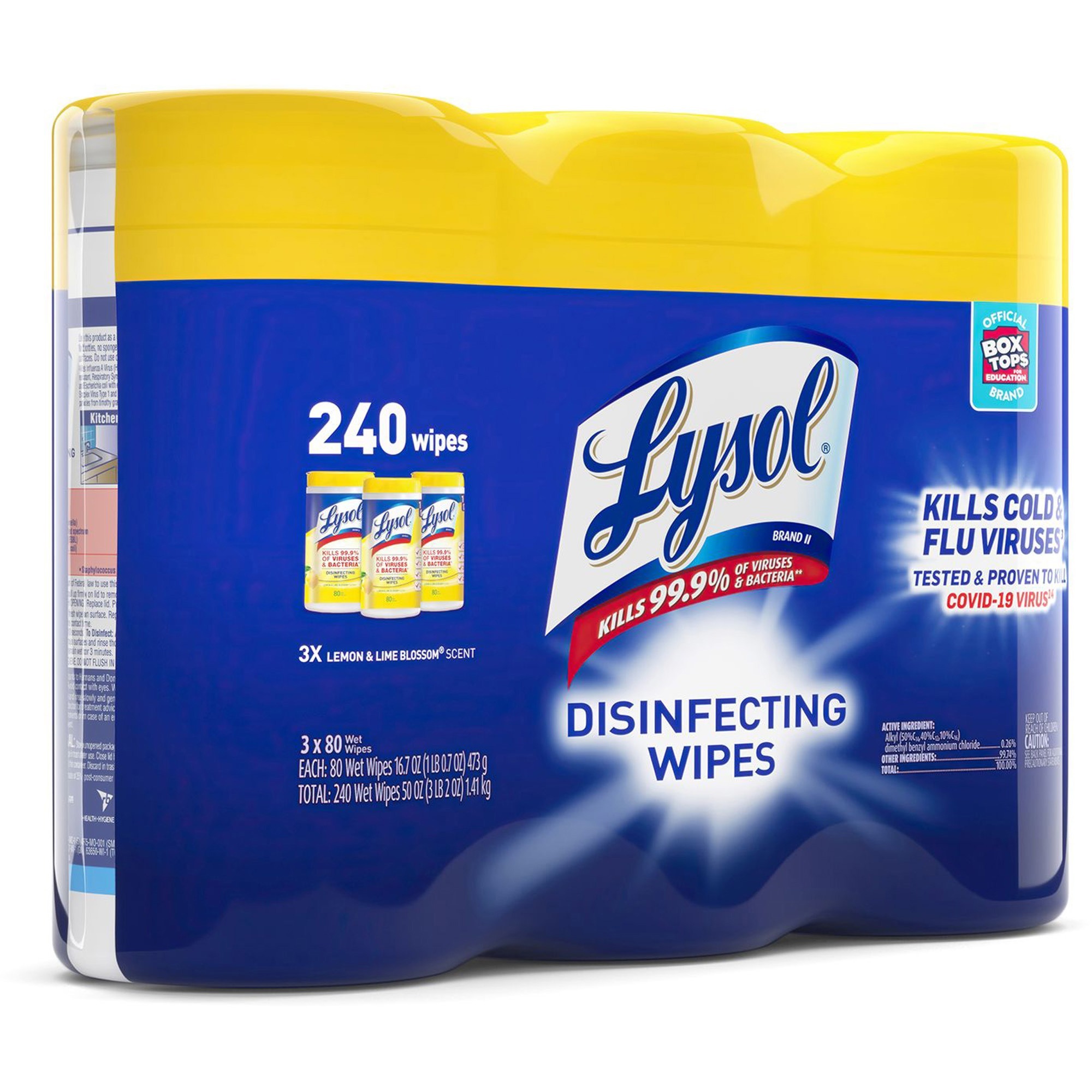 Lysol Lemon/Lime Disinfecting Wipes – Wipe – Lemon, Lime Blossom Scent – 80 / Canister – 3 / Pack – White