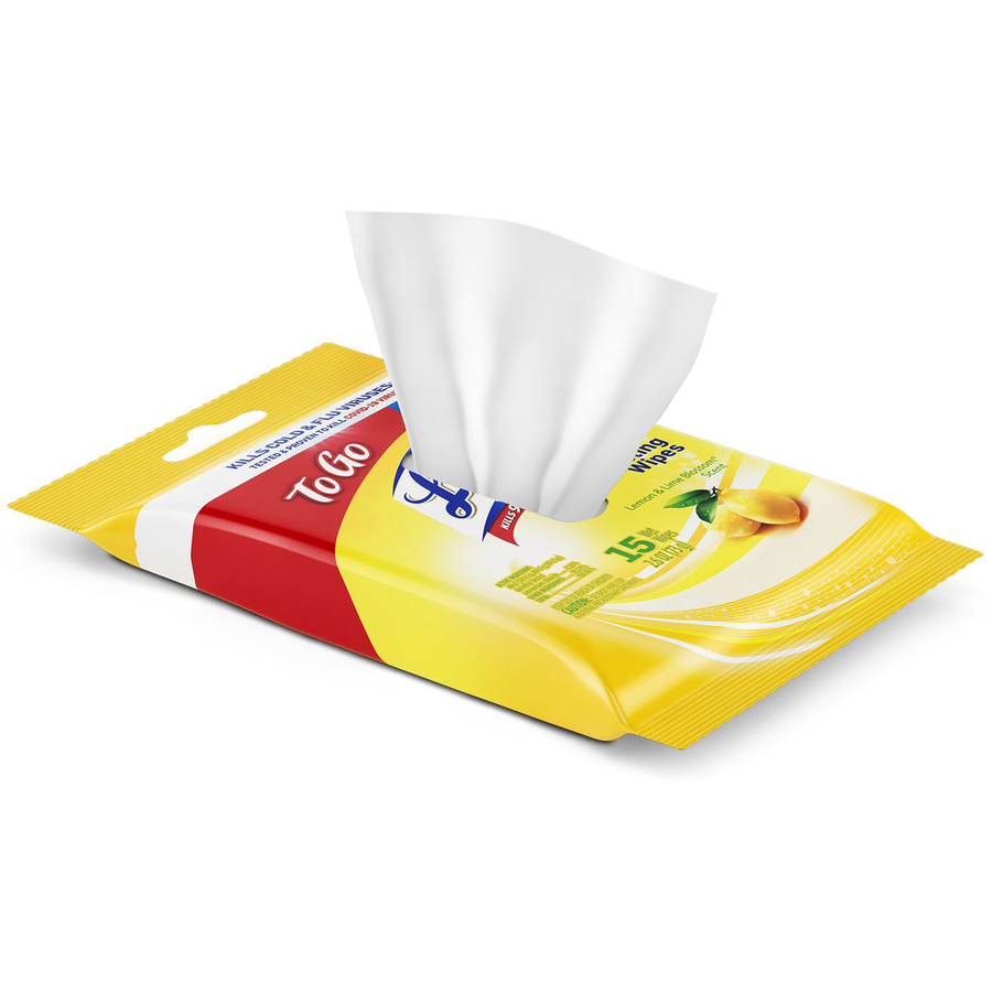 Lysol To Go Disinfecting Wipes in Flatpacks – Wipe – Lemon, Lime Blossom Scent – 15 / Pack – 48 / Carton – White