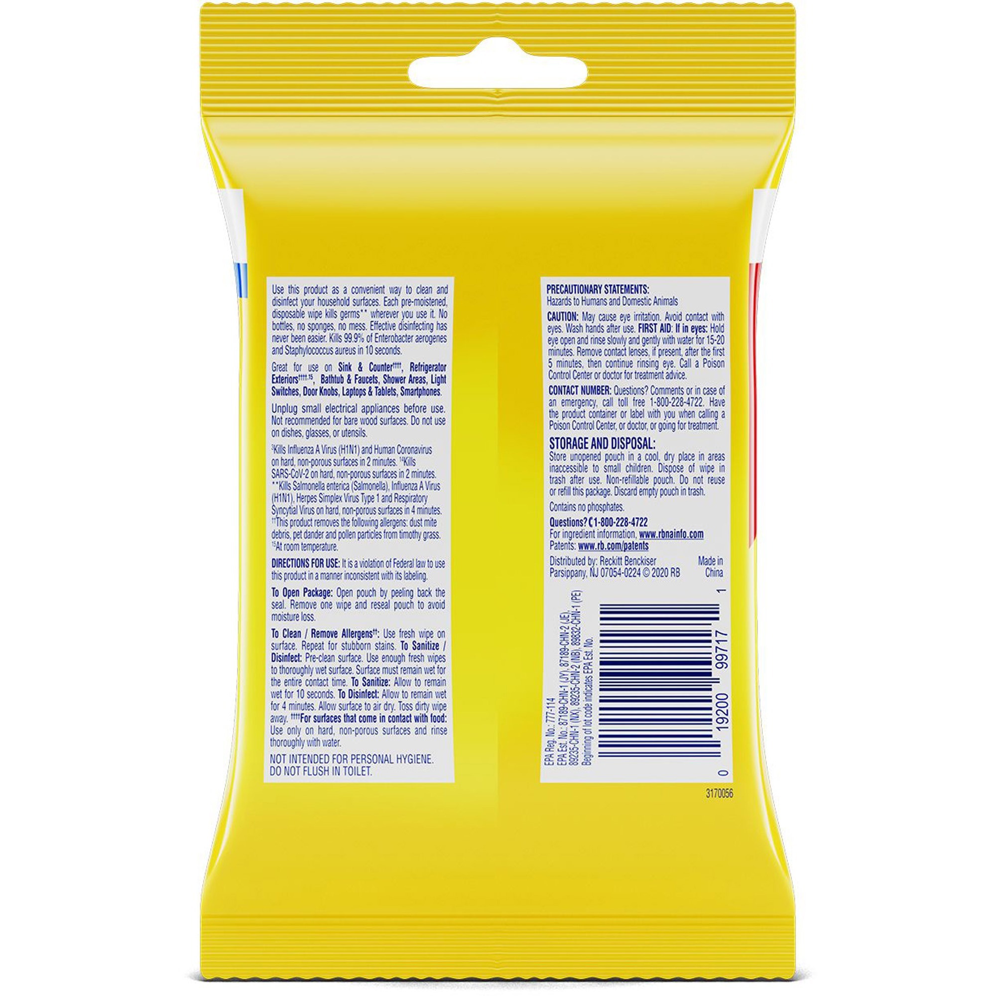 | Marketing Information | <p>Empower staff and customers to disinfect the surfaces with a portable to-go pack of Lysol Disinfecting Wipes. Pre-moistened disinfecting wipes kill 99.9 percent of viruses and bacteria, including the virus that causes COVID-19, when used as directed on hard, nonporous surfaces. Hospital-type disinfection works on a variety of surfaces, including electronics. Quickly clean and disinfect high-touch germ, hot spots to help protect your customers and staff. Clean up and keep moving with packaging that's easy to open, dispense and store.</p> |