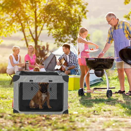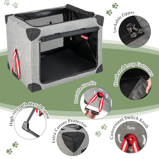 M/L/XL 3-Door Dog Crate with Removable Pad and Metal Frame-L