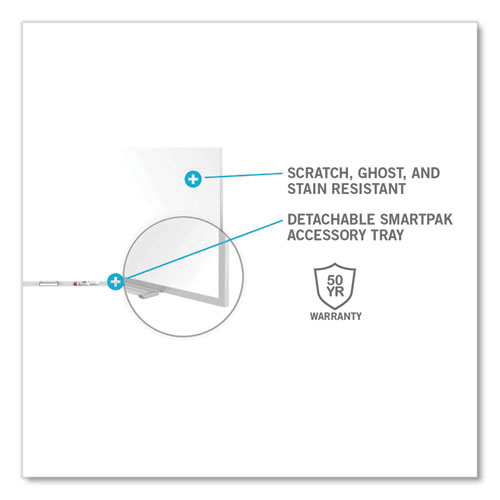 Providing long-lasting performance and durability, Ghent’s Porcelain Magnetic Whiteboards are made with customers in mind. The porcelain-on-steel surface is mounted to a solid backing for added strength that stands up to the rigors of the most high-use classrooms and offices. The durable scratch- and dent-resistant porcelain-enameled surface also ensures that your dry erase board never absorbs ink, eliminating the possibility of staining and ghosting. Easy-wipe surface requires less cleaning, too, so you can achieve a long-lasting bright white surface without the hassle. Use the magnetic surface to post flyers, bulletins, teaching accessories and more. Each board features a sleek satin aluminum frame with a matching cork-strip map rail and an accessory tray.Note: This is a non-returnable item.