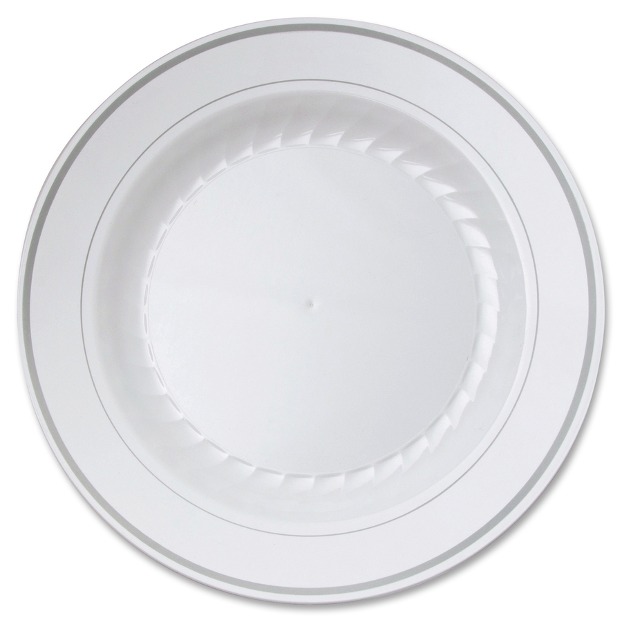 | Marketing Information | <p>Single-use dinnerware features a classic, elegant design to enhance the dining experience at any upscale event. Heavyweight plastic construction offers a strong, durable solution for a range of versatile applications. Disposable design alleviates the inconveniences of permanent ware for hassle-free use. Dinnerware is perfect for company gatherings, special events, parties, picnics and more.</p> |