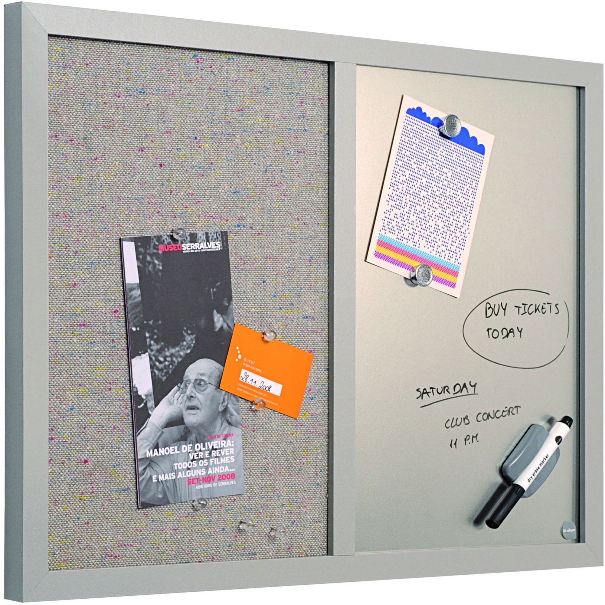 | Marketing Information | <p>Combination board features a dual-surface design to give you the option to use either the magnetic, dry-erase surface or felt bulletin surface. Durable fabric surface never shows pinholes and is excellent for displaying a variety of items with pushpins or hook-and-loop adhesives. Dry-erase surface wipes down completely for reliable everyday use. Included mounting system allows you to easily hang this board vertically or horizontally in any optimal location.</p> |