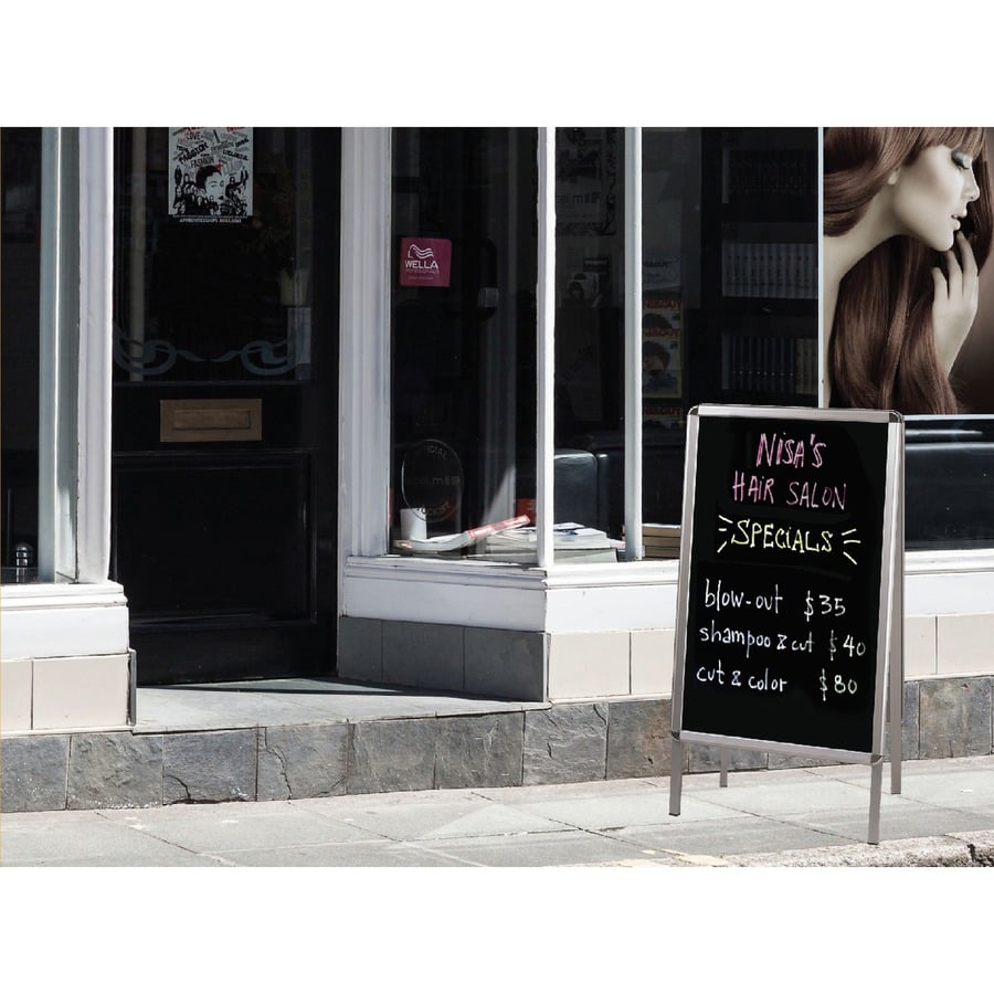 MasterVision Wet-Erase Sign Board – 33″ Height x 23″ Width – Black Melamine Surface – Silver Aluminum Frame – 1 Each – 42″ x 25″ x 25.5″