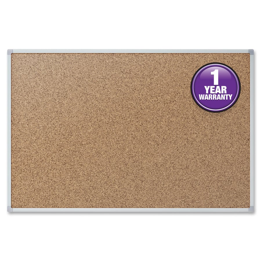 | Marketing Information | Classic bulletin board offers a durable, natural cork surface that is great for quick posting and display needs. Hang in your cubicle or other low-traffic environment. Use pushpins or thumbtacks to post items to the fully tackable cork surface. Pushpins and thumbtacks are sold separately. Silver finish, aluminum frame is sturdy and stylish. Easy pass-through mounting hardware is included so you can hang the board vertically or horizontally. <p><a id="gfk-spex-minisite" rel="nofollow" href="javascript:void(0)" onclick="javascript:window.open('//content.etilize.com/mini-site/en_us/1025009690.html', '_blank', 'height=800, width=780, resizable=yes, scrollbars=yes, toolbar=no, menubar=no, location=no, directories=no, status=no'), return false, ">More from the Manufacturer</a></p> |