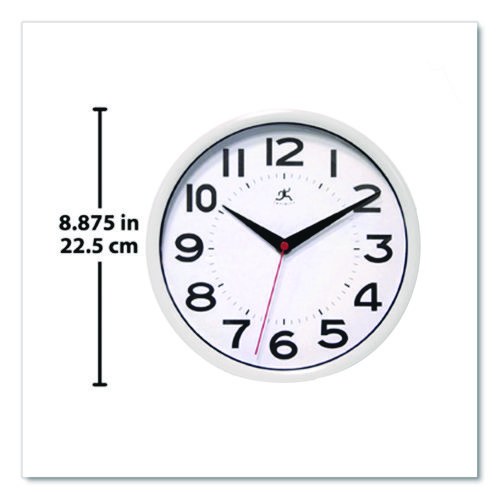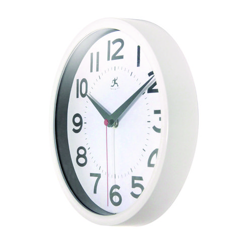 Experience accurate timekeeping, quiet operation, and effortless style with this Metro resin analog wall clock. Featuring large black numbers on a sleek white face with silent-running hands, this battery-powered clock keeps time accurately with minimal noise and offers easy visibility from afar. Enriches office interiors with its understated design and stylish case.