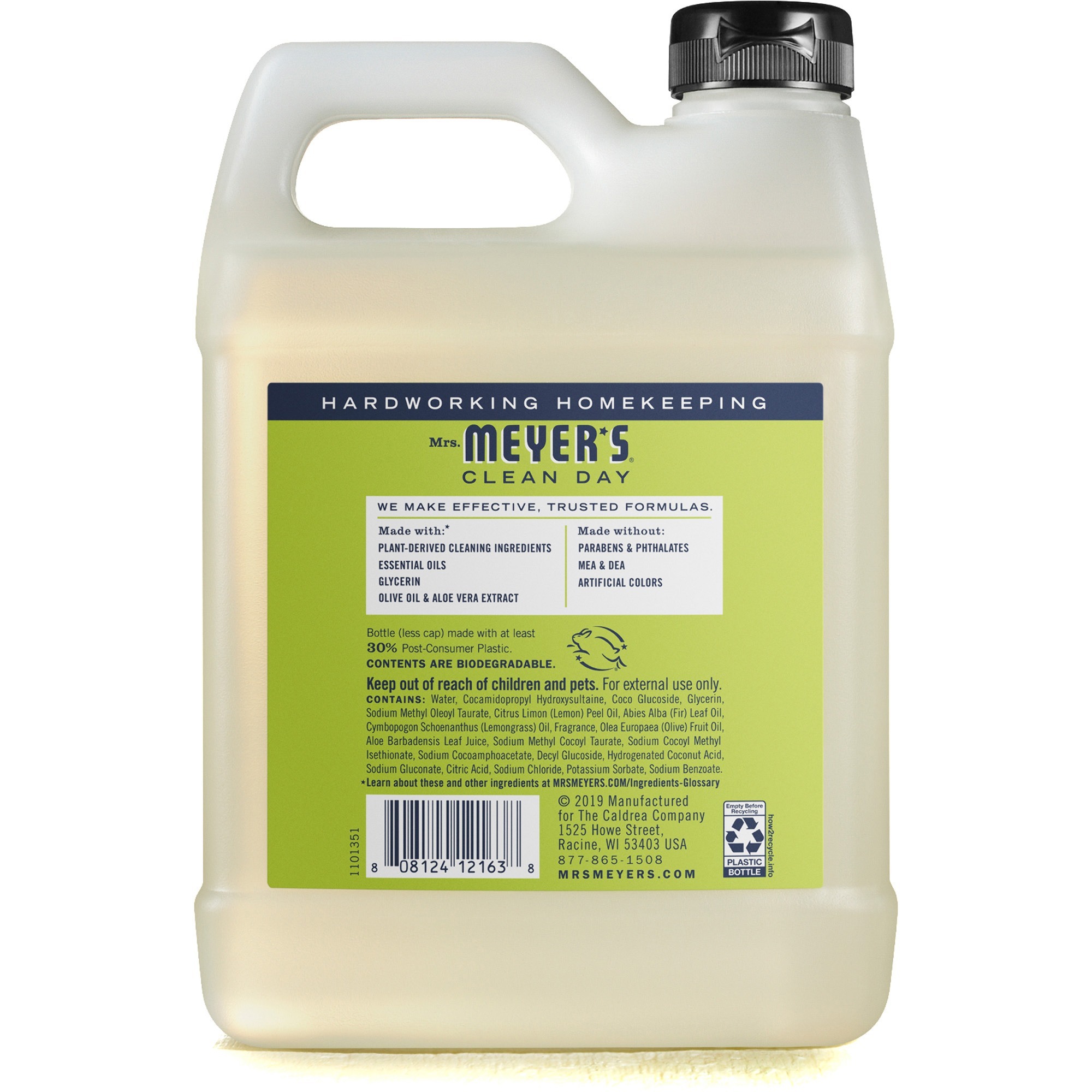 | Marketing Information | <p>Refill for Mrs. Meyer's Clean Day Hand Soap contains a special recipe of aloe vera gel, olive oil and a unique blend of essential oils and other naturally derived ingredients for a cruelty-free formula that won't dry hands. Lemon Verbena has a light, mild citrus scent that is refreshing and invigorating. Use this large refill size for your 12.6 oz. pump dispensers (not included).</p> |