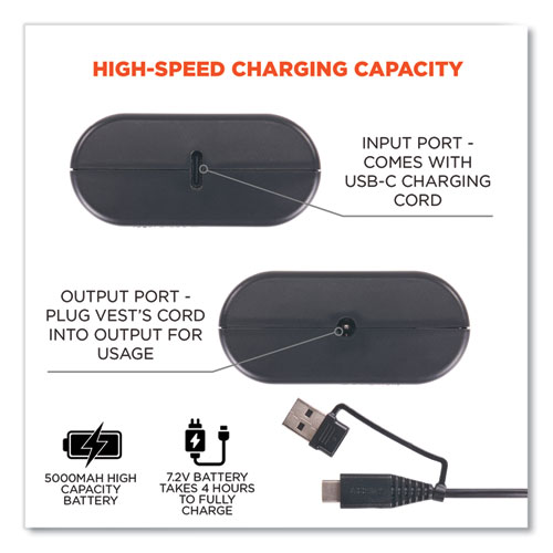 The N-Ferno 6495 Rechargeable Heated Vest features a battery power bank (7.2 V/5,000 mAh) and four heating zones around the neck collar, mid-back, and left and right chest for all-day warmth in cold to extreme conditions. This heated vest features 80 g of insulation and serves as a low-bulk mid-layer option that traps body heat and fits comfortably under bulky winter jackets and gear. A wind-resistant polyester performance exterior provides protection from the elements and a fleece lining around the collar adds warmth for all-day use. The heated vest offers warmth without compromised mobility, featuring stretchable spandex blend on the sides for a comfortable fit. Unlike typical boxy and bulky winter gear, this lightweight vest is designed for a more athletic, snug fit to keep the heating zones close to the body for maximum warmth. This vest features an elastic bungee waist for a snug and adjustable fit that keeps cold air out and a zippered closure makes for easy on and off.Note: This is a non-returnable item.