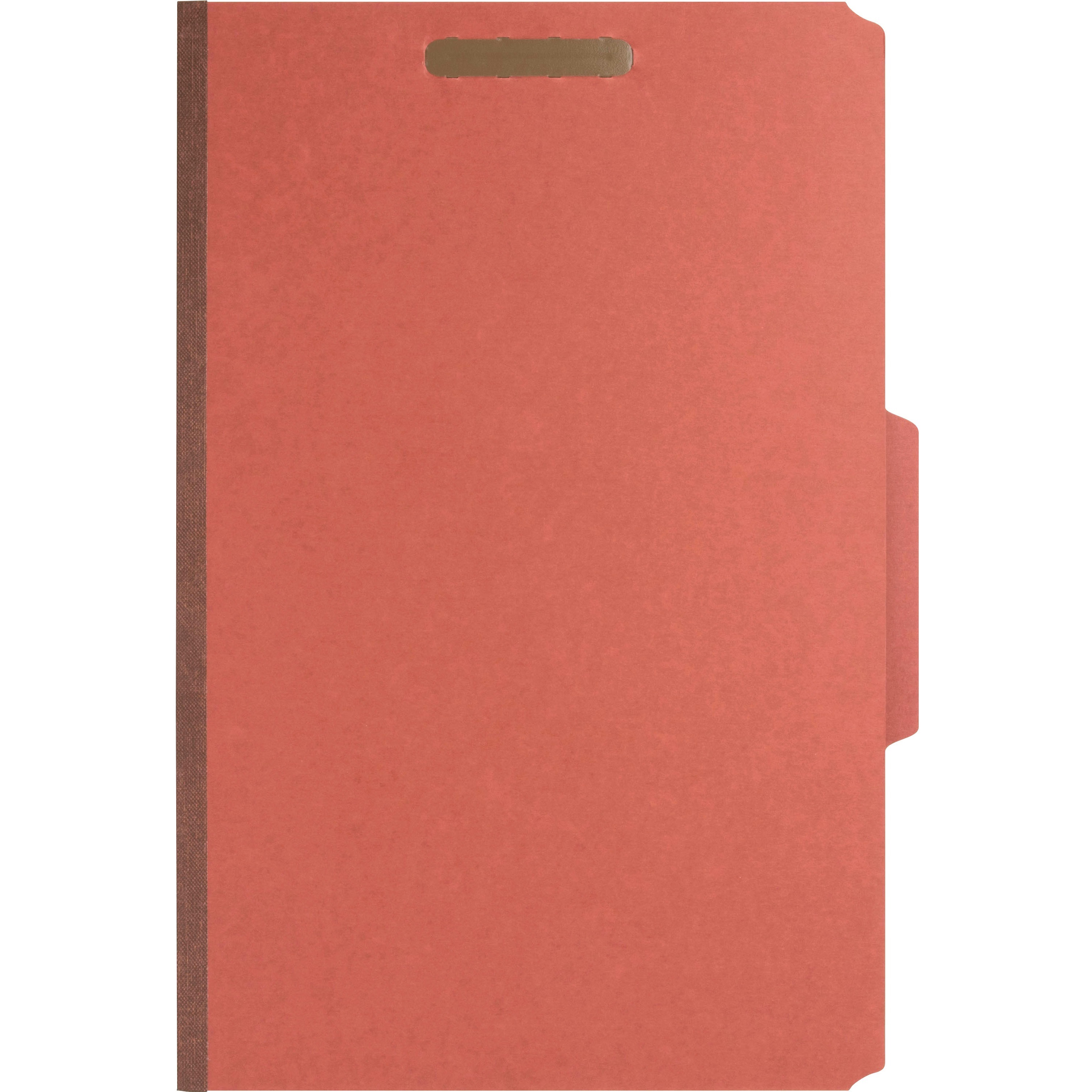 Nature Saver 2/5 Tab Cut Legal Recycled Classification Folder – 8 1/2″ x 14″ – 2″ Expansion – 4 Fastener(s) – 2″ Fastener Capacity for Folder, 1″ Fastener Capacity for Divider – 2 Pocket(s) – 2 Divider(s) – Pressboard – Red – 100% Recycled – 10 / Box