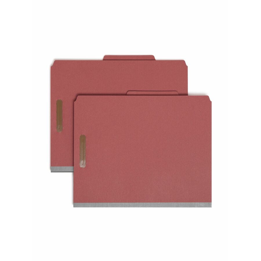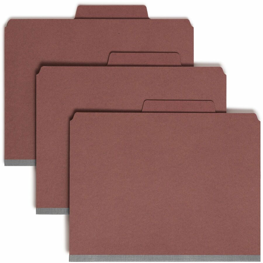 Nature Saver 2/5 Tab Cut Legal Recycled Classification Folder – 8 1/2″ x 14″ – 6 Fastener(s) – 2″ Fastener Capacity for Folder, 1″ Fastener Capacity for Divider – 2 Divider(s) – Pressboard – Red – 100% Recycled – 10 / Box