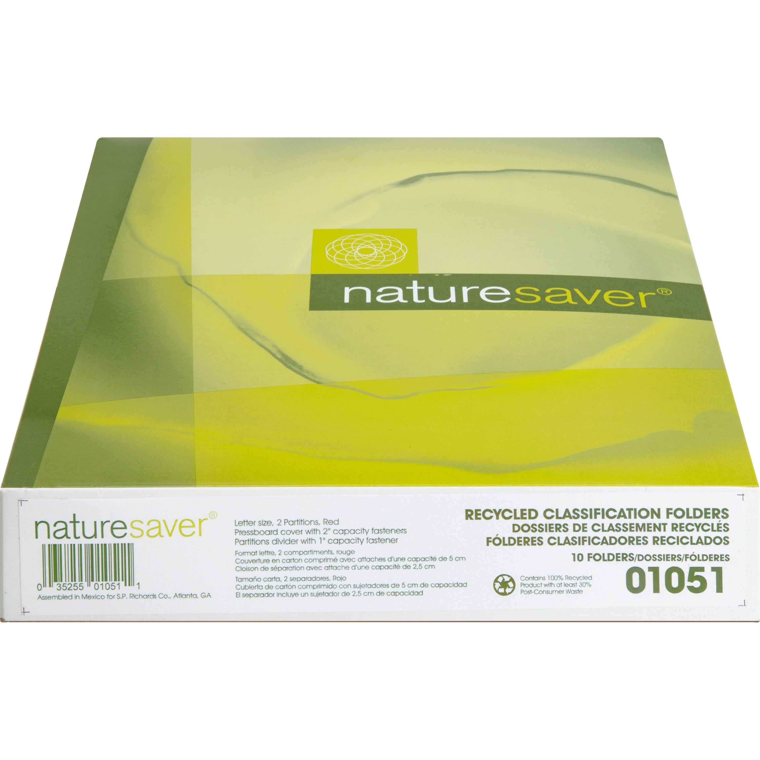 Nature Saver 2/5 Tab Cut Letter Recycled Classification Folder – 8 1/2″ x 11″ – 2″ Expansion – 4 Fastener(s) – 2″ Fastener Capacity for Folder, 1″ Fastener Capacity for Divider – 2 Pocket(s) – 2 Divider(s) – Pressboard – Red – 100% Recycled – 10 / Box