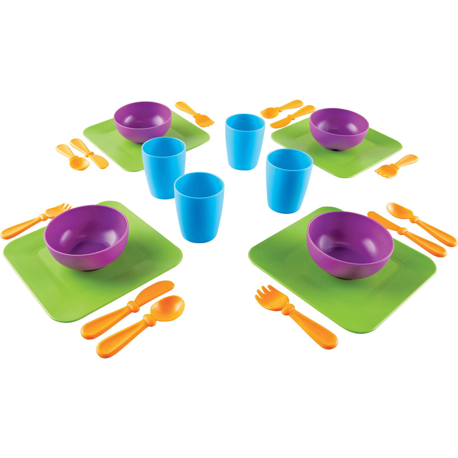 | Marketing Information | <p>Dish set features a modern design and larger size to truly fit play food (sold separately). Larger size makes this set easy to hold for a more enjoyable experience. Dish set encourages social interaction and builds color identification through dramatic play. Set is designed for children ages 2 and up.</p> |