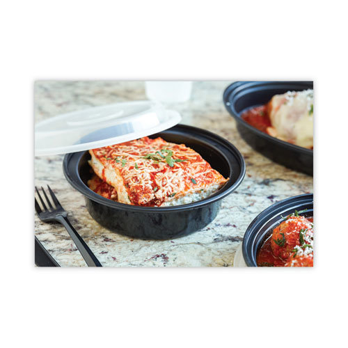 Newspring VERSAtainer Microwavable Containers, 16 oz, 6″ Diameter, Black/Clear, Plastic, 150/Carton