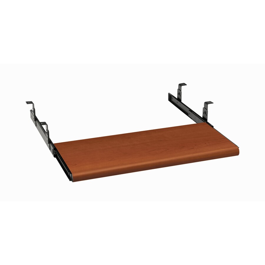 | Marketing Information | Part of the Office Suites Collection, Underdesk Keyboard Drawer is height-adjustable to move keyboard and mouse off the desktop to save work space. Three height adjustments suit your preferred work position, placing the keyboard 2-1/2", 2-1/8" or 1-3/4" below the track. Mouse tray mounts to right or left side of the keyboard tray or stows underneath when not in use. Ball-bearing glide tracks ensure smooth drawer movement. Drawer is easy to install and adjust. Sturdy, impact-resistant tray fits standard and ergonomic keyboards. Keyboard tray dimensions are 20-1/8" wide x 7-3/4" deep. Mouse tray measures 7-3/8" wide x 7-5/8" deep. The keyboard drawer requires a 28-3/4" maximum width for keyboard and mouse tray. |
