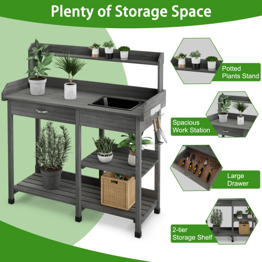 - It with a spacious work top surface for any garden task. It provides a durable sink to make potting plants easy and to help keep workspace tidy.
