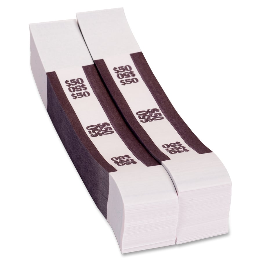 PAP-R Currency Straps – 1.25″ Width – Total $5,000 in $50 Denomination – Self-sealing, Self-adhesive, Durable – 20 lb Basis Weight – Kraft – White, Multi