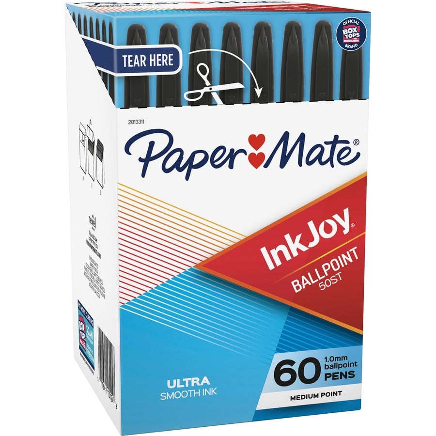| Marketing Information | <p>Brighten up your writing by using these InkJoy 50ST Ballpoint Pens. Fluid ink formula flows as fast as your ideas so take notes and write freely without stopping. Vivid ink is easy to read because it stands out on your paper. Medium point tip (1.0mm) avoids thin, hard-to-read lines and creates your messages in firm, bold lines. Simply close pen with its lid to preserve the black ink to write another day.</p> |
