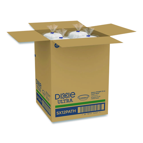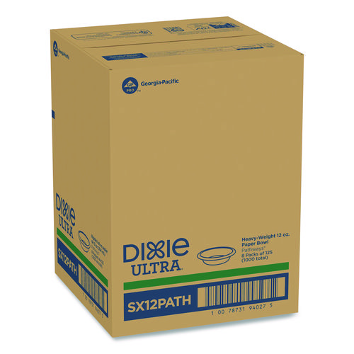 Moisture resistance, grease resistance and dry and wet rigidity make Dixie Ultra® Heavy-Weight Paper Bowls the right choice for the heaviest, messiest foods you serve. The unique structure and multi-layer coatings give these disposable paper bowls their strength, while the Soak-Proof Shield helps keep moisture and grease from leaking through. The Pathways® design matches other Dixie Ultra® plates, platters, bowls and cups to create an attractive, coordinated look. These heavy-duty paper bowls are ideal for foodservice and special events, and because they’re microwaveable and cut-resistant, these small paper bowls come in handy in kitchens and breakrooms.
