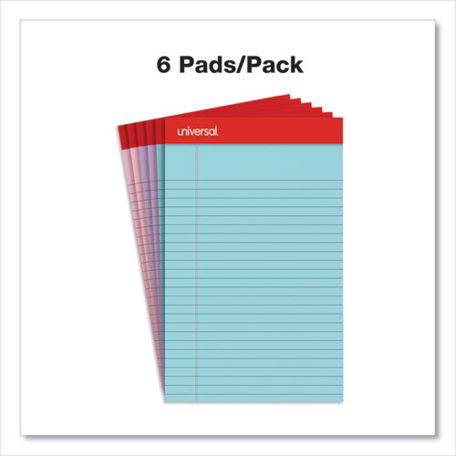 Perforated Ruled Writing Pads, Narrow Rule, Red Headband, 50 Assorted Pastels 5 x 8 Sheets, 6/Pack