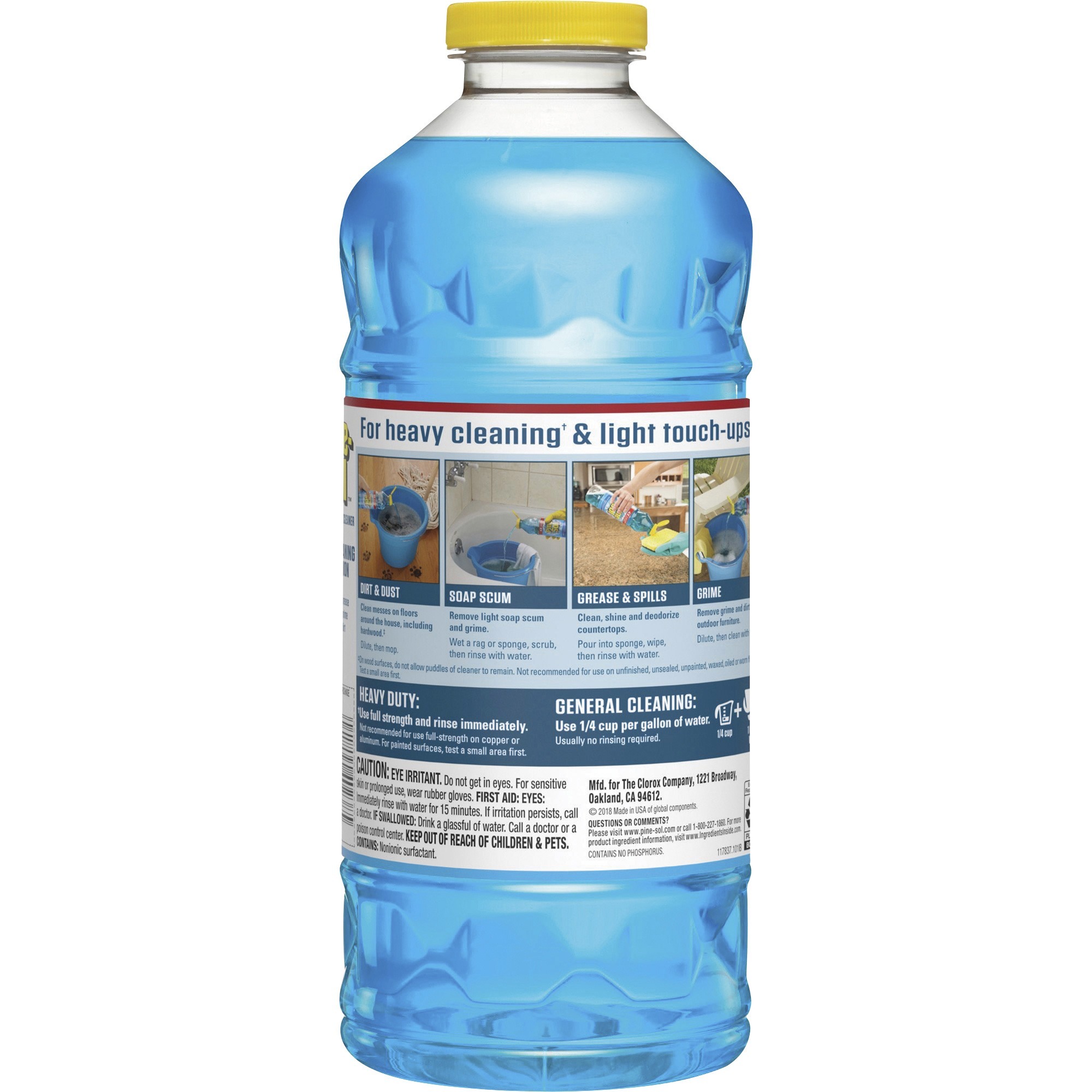 | Marketing Information | <p>Pine-Sol All Purpose Cleaner gives you four times the cleaning action, cutting through dirt, grime and grease and deodorizing your home with a great, long-lasting scent. This concentrated formula cleaner can tackle any challenge. Simply mix Pine-Sol with water at different strengths to adjust your cleaning power each time, unlike premixed cleaners. Pine-Sol All Purpose Cleaner is safe to use on most hard nonporous surfaces, including finished hardwood, ceramic tile, linoleum and plastic. It leaves no sticky residue. With the power of Pine-Sol on your side, you only have to clean once to get the job done right.</p> |