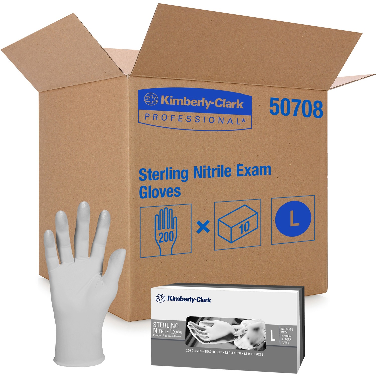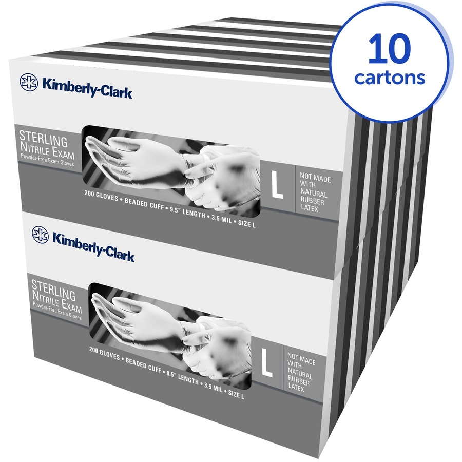 Kimberly-Clark Professional Sterling Nitrile Exam Gloves – Large Size – For Right/Left Hand – Light Gray – Latex-free, Powder-free, Textured Fingertip, Beaded Cuff, Non-sterile, Disposable, Non-sterile, Disposable, Static Dissipative – For Laboratory Application, Chemotherapy, Industrial – 10 / Carton – 3.5 mil Thickness – 9.50″ Glove Length