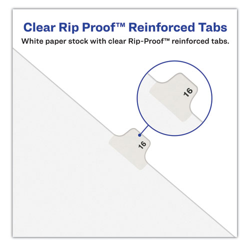 Rip Proof reinforced, dual-sided, laminated tabs make it easy to organize your information. The binding edge is unpunched, so these dividers can fit practically any binding system. Ideal for briefs, legal exhibits, mortgage documentation files and more! Avery® Style is Helvetica bold type style and Allstate® Style is Helvetica regular type style.