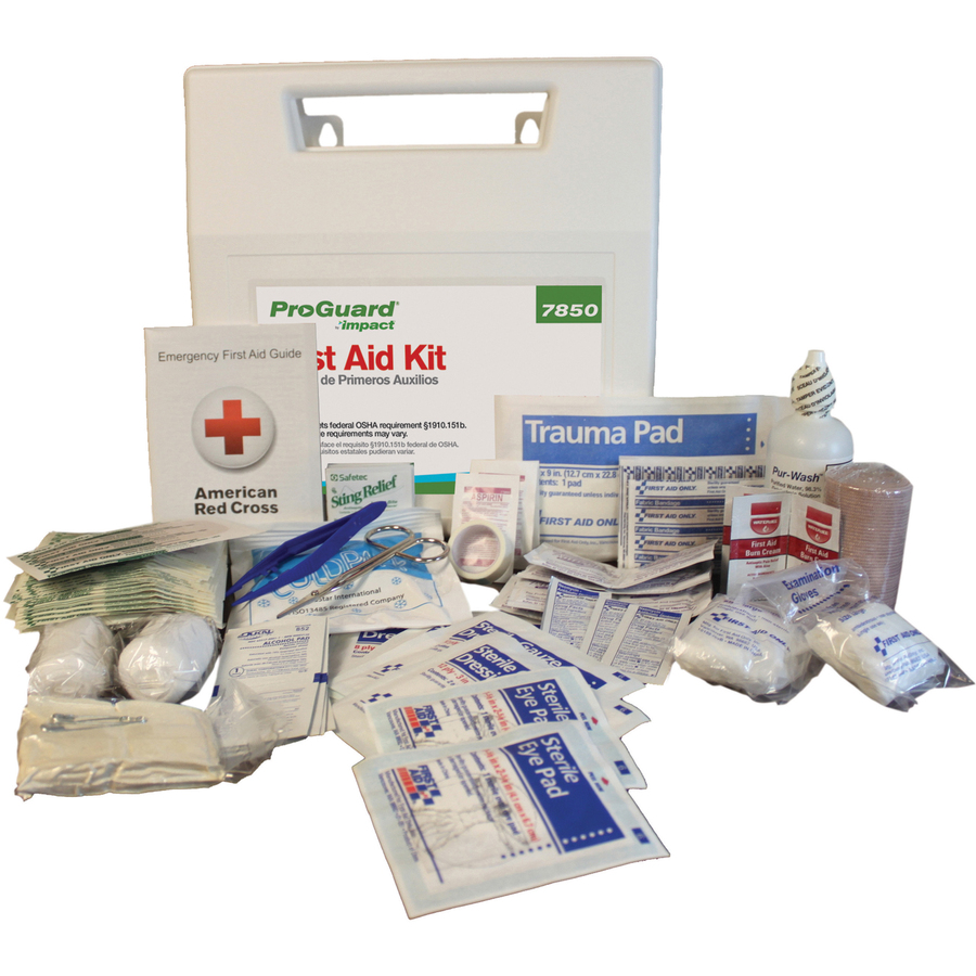 ProGuard 50-Person First Aid Kit – 50 x Individual(s) – 11.4″ Height x 3.1″ Width11.3″ Length – Plastic Case – 6 / Carton