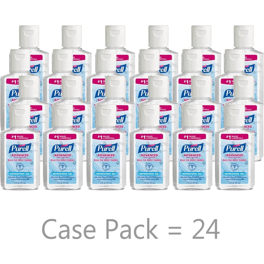PURELL® Advanced Hand Sanitizer Gel – Clean Scent – 2 fl oz (59.1 mL) – Flip Top Bottle Dispenser – Kill Germs – Hand, Hospital, Healthcare, Skin – Yes – Clear – Paraben-free, Phthalate-free, Anti-irritant, Preservative-free, Triclosan-free – 24 / Carton