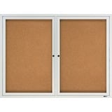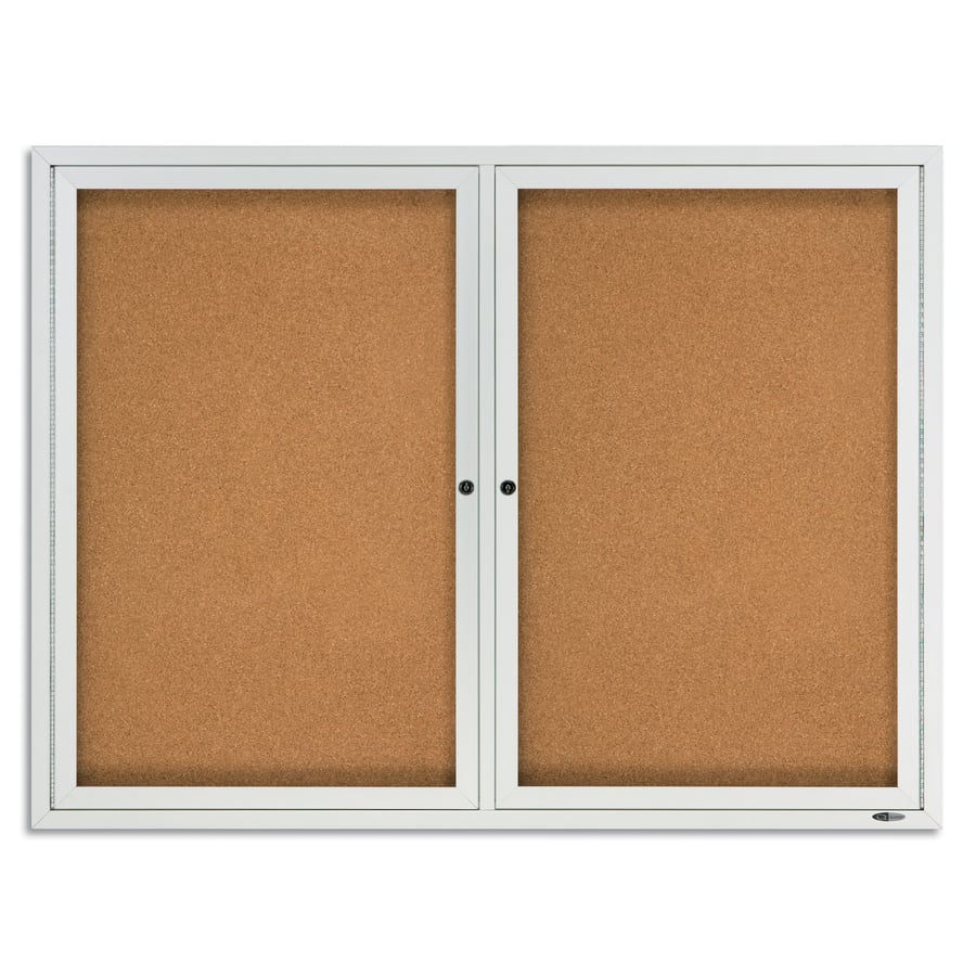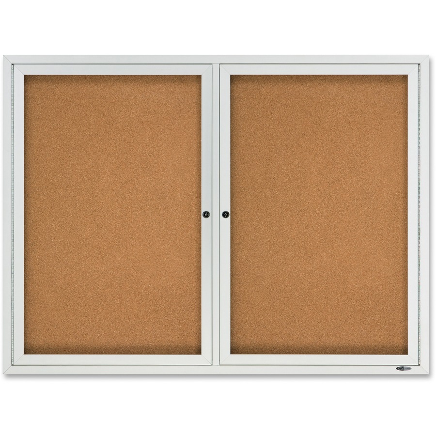 | Marketing Information | Enclosed outdoor bulletin board offers a self-healing cork surface and high-density backing for maximum pin-holding power, ensuring documents stay securely posted. Two locking, water-resistant, shatterproof acrylic glass doors and aluminum-vented casing allow posting, protecting and easily updating important messages. Satin-finish anodized aluminum frame offers full-length hinges and weather-resistant durability. Bulletin board includes one key per lock. <p><a id="gfk-spex-minisite" rel="nofollow" href="javascript:void(0)" onclick="javascript:window.open('//content.etilize.com/mini-site/en_us/1011648651.html', '_blank', 'height=800, width=780, resizable=yes, scrollbars=yes, toolbar=no, menubar=no, location=no, directories=no, status=no'), return false, ">More from the Manufacturer</a></p> |