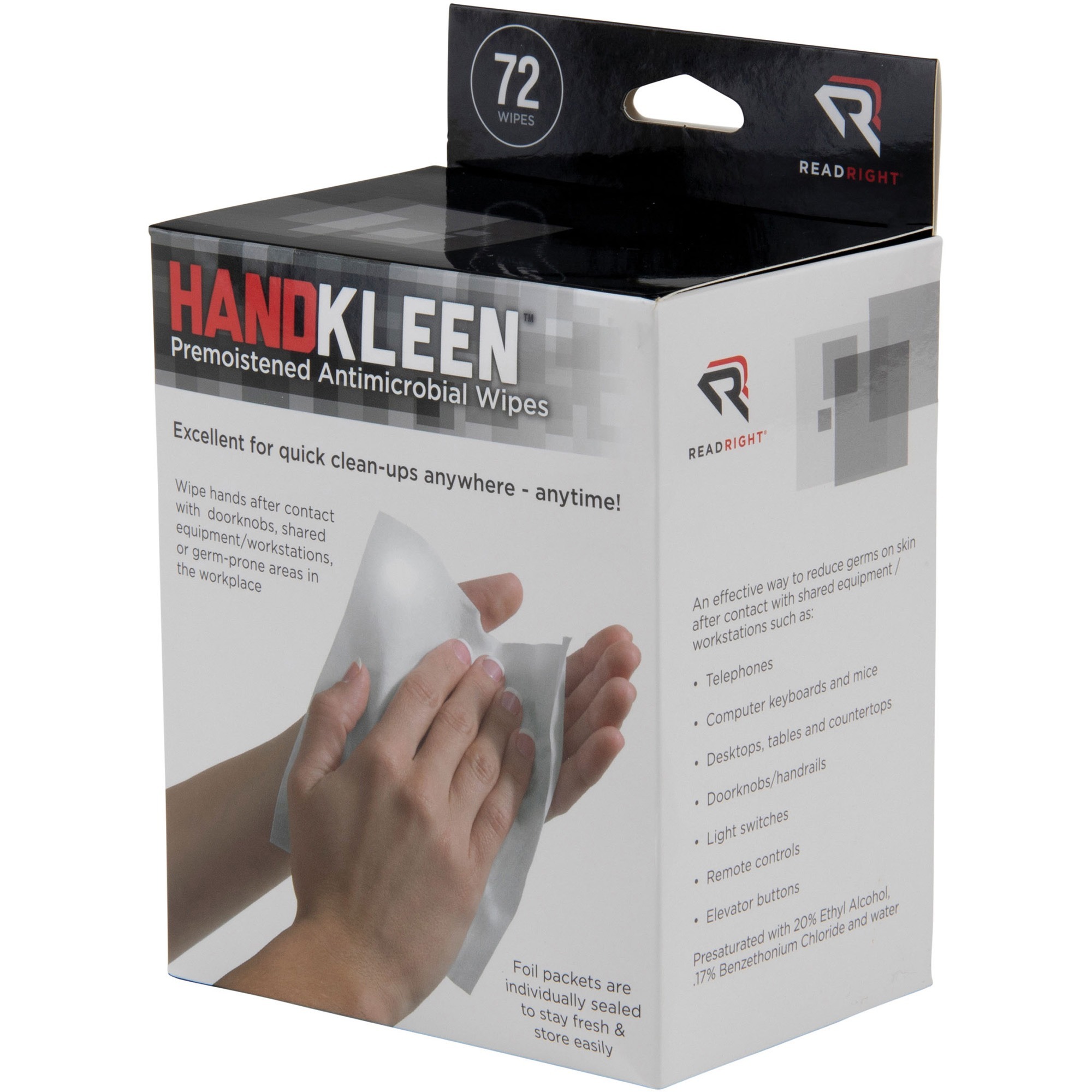 Read Right Handkleen Wipes – 5″ x 7″ – White – Anti-bacterial, Pre-moistened, Antimicrobial – For Multipurpose – 72 / Box