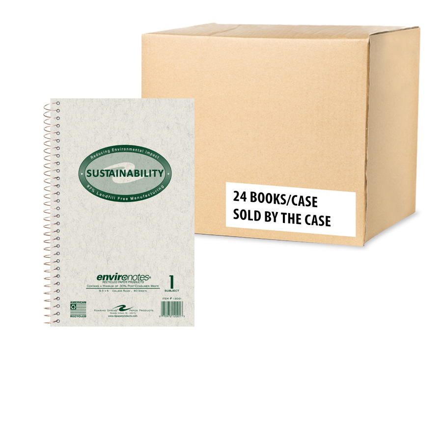 Roaring Spring Environotes Wirebound Notebook – 80 Sheets – 160 Pages – Printed – Spiral Bound – Both Side Ruling Surface – 15 lb Basis Weight – 56 g/m² Grammage – 9 1/2″ x 6″ – 0.30″ x 6″ x 9.5″ – White Paper – Recycled – 24 / Carton