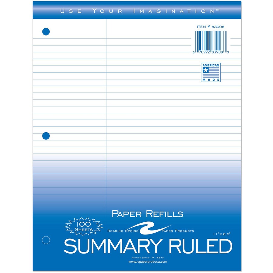 Roaring Spring Law Ruled Loose Leaf Filler Paper – 100 Sheets – 200 Pages – Printed – Both Side Ruling Surface – Law Ruled Red Margin – 3 Hole(s) – 15 lb Basis Weight – 56 g/m² Grammage – 11″ x 8 1/2″ – 0.30″ x 8.5″ x 11″ – White Paper – 100 / Pack